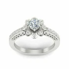 1Ct Simulated Diamond Flower Engagement Ring Solid 14K White Gold Plated Silver
