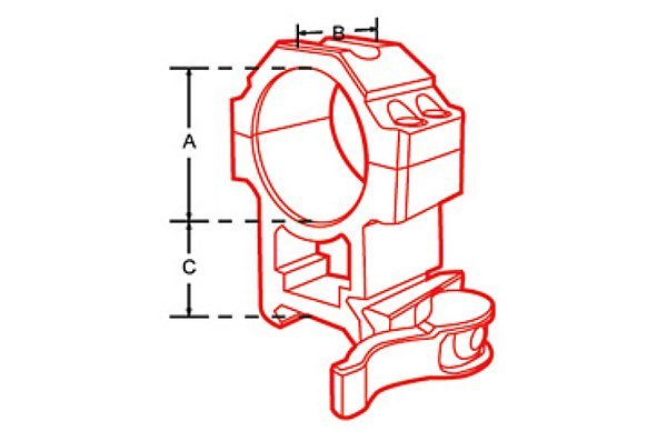 Ring Set 1 Inch High Quick Detach RNG-RQ2W1204 Ring set for 1 inch diameter tube scopes. Rings feature Quick Detach for tool free rock solid installation and removal. Heavy Duty rings hold your optics tight and in place. A great set of rings at a easy on the budget price from David's Collectibles. Detailed Information: 4-screw high profile ring. Precision machined from aircraft-grade aluminum alloy with anodized black matte finish. Robust and user friendly ergonomic quick detach/lock lever fully adjustable to Fit on Any Picatinny or Weaver Rail. High quality synthetic protective tape applied on rings internal surface. Tight tolerance control and repeatable positive locking for optimal re-zero performance. Extensively field tested under extreme Operations and Well Received by field experts and law enforcement personnel Specs: Material: Metal Weight: 2.9 oz Rail Type: Picatinny/Weaver Profile Level: High Ring Diameter: 1 inch Ring Width: 22 mm Max. Scope Outer Dia.: 65 mm Screws Per Ring: 4 A: 1 inch B: 22mm C: 20mm