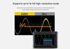 FNIRSI DPOS350P Oscilloscope Signal Generator Spectrum Analyzer Frequency Test Features: - 7-inch IPS high-definition touch screen with a resolution of 1024X600. The touch screen is designed with tempered glass, which has high hardness and effectively prevents surface scratches. - 1GSa/s real-time sampling rate, 350MHz analog bandwidth. - Supports up to 16 bit high-resolution mode, which can effectively filter out noise components and has better signal detection and display capabilities, helping to analyze the details and features of signals. - Dual channel input, with 2 input channels and an input impedance of 1Mohms (18PF), capable of measuring 2 different signals simultaneously. - The combination of digital fluorescent display technology with grayscale and color temperature display can further clarify the distribution and probability characteristics of signals. - A fully functional signal generator that can output 14 types of waveform signals, with adjustable output frequency (0-50MHz), amplitude (0-5V), offset (±2.5V), and duty cycle (0.1% - 99.9%). The unique wave cutting output function can store up to 500 customized signals. - Based on FFT conversion method, it can measure the frequency range of 200K~350M. The starting frequency, ending frequency, bandwidth, reference level, level attenuation, and FFT length can be manually adjusted. Featuring waterfall chart display, 3D waterfall chart display, cursor measurement, and one click automatic adjustment function. Can be used for EMI electromagnetic interference measurement, MF/HF/VHF radio frequency measurement, harmonic measurement of high-frequency signals, etc. - You can connect to a computer via a USB cable to view or copy stored screenshot images, or you can copy the system image file ISO to an oscilloscope for system upgrades. - The analog front-end input stage design adopts a high-voltage resistant design, which can achieve a withstand voltage of over 400V in any gear without being burned out. - Built-in 3.7V/8000mAh polymer lithium battery, integrated with QC2.0 protocol, up to 18W, can work continuously for about 3 hours when fully charged. - Adopting anodized aluminum alloy material combined with ABS+PC injection molded back shell, it not only has a beautiful appearance but also has heat dissipation performance and a sturdy body. Main Functions: - ZOOM scaling time base: catch a portion of the waveform of the main signal for amplification and viewing. This mode is particularly suitable for analyzing communication protocol digital logic signals. - 150M/20M hardware bandwidth limitation: physical bandwidth limitation that can filter out high-frequency components above 150M/20MHz, such as noise, harmonics, etc. - 2mV/grid high vertical sensitivity, extremely low system noise: maintains a 350M analog bandwidth at 2mV sensitivity. The simulation front-end adopts sealed shielding measures to achieve very low bottom noise. - Adaptive adjustable high-frequency suppression: It can automatically trigger suppression of high-frequency components based on waveform frequency characteristics, and the intensity can also be adjusted. - Large time base rolling mode: mainly used for real-time monitoring of slow level changes, such as battery charging and discharging curves. - Digital fluorescence X-Y mode: The X-Y mode is a closed curve generated by using the signal from channel 1 as the X-axis and the signal from channel 2 as the Y-axis, which can be used to compare the amplitude, frequency, and phase of two sets of signals. - Complete triggering function: It has three triggering modes: automatic, single shot, and regular. The single shot and regular modes can catch sudden signals, while the automatic mode is mainly used to measure periodic signals. - One click automatic adjustment: built-in efficient control algorithm, automatically identifies signal characteristics, adapts trigger levels, and displays waveforms to the optimal state. - Manual cursor measurement: mainly used to measure parameters such as amplitude, frequency, and period of signals containing significant noise. - FFT display: qualitatively view the spectral components of the current signal. - One click waveform/screenshot saving: built-in 1Gbit storage space, can store up to 90 images or 500 sets of waveforms, and can perform secondary analysis on the saved signals. Specification: Basic Parameters: - Power-on configuration: preset 5 projects - Language version: English - Screen size: 7-inch - Screen resolution: 1024 x 600 high resolution - Screen processing: IPS full view - Interaction method: capacitive touch screen - Charging time: about 5 hours - Power consumption: 10W - Expansion interface: USB transmission interface - Automatic shutdown: 15 minutes ~ 1 hour/off - Firmware upgrade: support .iso mirror image upgrade - Built-in battery specification: 3.7V-8000mAH lithium battery - Standby time: about 3 hours - Heat dissipation method: air cooling - Product size: 190 x 128 x 37mm Oscilloscope Parameters: - Channel number: 2 - Analog bandwidth: 350MHz - Rising time: 1nS - Maximum sampling rate: 1GSPS - Storage depth: 60Kpts - Input impedance: 1Mohm/14PF - Time base range: 5nS ~ 50S - Rolling time base: 50mS ~ 50S - Vertical sensitivity: 2mV ~ 20V (1X) - Vertical range: 16mV ~ 160V (1X) - DC precision: ±2% - Time precision: ±0.01% - Input coupling: DC/AC - Background grid: displayed/concealed - Waveform movement: coarse tuning/fine tuning - High voltage anti-burn: withstand voltage of 400V - Waveform brightness: adjustable - Simple FFT display: support - Digital fluorescent: support - Probe magnification: 1X/10X/100X - Hardware bandwidth limit: 150M/20M - High resolution mode: 8bit - 16bit - Parameter measurement: 12 types - Cursor measurement: time, period, frequency, level, voltage - Trigger detection: digital trigger - Trigger channel: CH1/CH2 - Trigger mode: automatic/single time/normal - Trigger edge: rising edge/descending edge - Trigger suppression: L1 - L3 - Trigger 