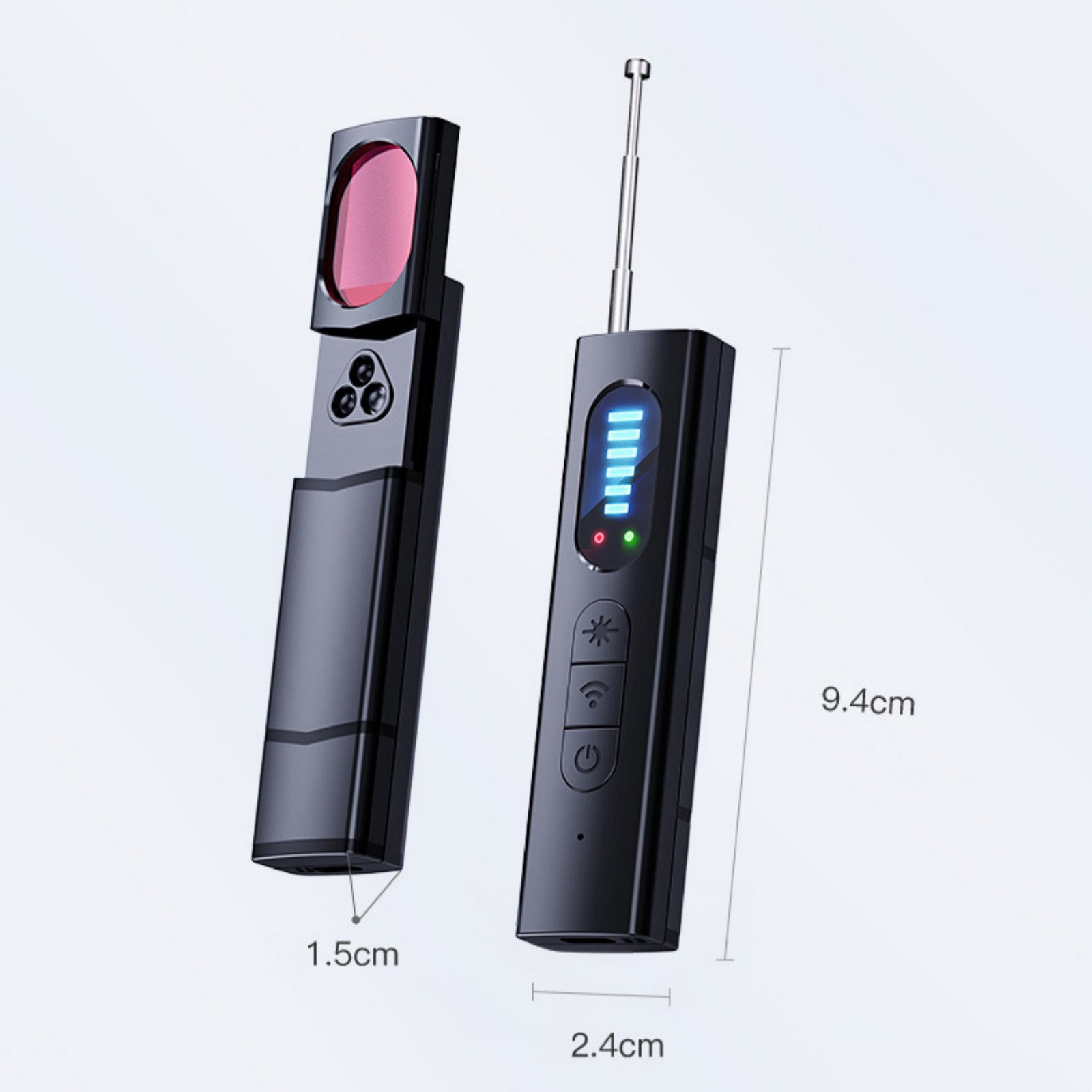 Product Description Features: 1. Multi-Function Hidden Camera Detector: Hidden Device Detector Has Powerful Detection Functions: 1. Hidden Camera Detector: Can Detect And Identify Various Hidden Cameras In Your Life; 2. Radio Frequency Detector: Detect Active Radio Frequency Bugs Transmitters, Such As Transmitting Cameras, GPS Trackers, Wireless Audio Errors; 3. Magnetic Field Detection: Can Detect The Presence Of The Magnetic Field Generated By The Gps Tracker. 4. Night Vision Camera Detection: Find Hidden Cameras With Night Vision Capabilities 2. Comprehensive Privacy Protection: The Camera Detector Is Equipped With 5-Level Sensitivity Adjustment Function. By Adjusting The Sensitivity Button, The Detection Range Can Be Flexibly Expanded Or Reduced To Meet The Needs Of Different Environments. The Spy Camera Detector Also Has Touch Alarm Function. If Someone Breaks In During The Night And Comes Into Contact With The Detector. It Sounds An Alarm To Ensure Your Safety And Privacy. 3. Lightweight And Durable: The Invisible Camera Detector Won' T Weigh You Down. With Its Efficient Design, Our Detector Provides A Simple And Hassle-Free Experience And Is Very Easy To Carry And Use. You Can Use It In Locker Rooms, Conference Rooms, Bathrooms, Hotels, Rental Houses, Offices And Many Other Places To Protect Your Personal Privacy And Important Information Anytime And Anywhere 4. Efficient Anti-Espionage Technology: Our Hidden Camera Detector Has 5 Levels Of Sensitivity And 4 Professional Modes. It Is A Professional-Grade Anti-Spyware Device Designed To Help Users Detect And Prevent Hidden Cameras, Ensuring Your Privacy Through Advanced Technology And Exquisite Design. You Can Use It In Various Environments With Confidence 5. 100% Customer Satisfaction: We Value Our Customers And Insist On Product Quality. If You Have Any Questions, You Can Contact Us. Our Customer Service Team Is Online 24 Hours A Day And Will Provide You With Satisfactory Solutions. 6. LED Lighting For A Variety Of Situations: Short Press The Mode Key To Switch To The Lighting Mode Can Be Used As A Flashlight To Deal With Various Emergencies 7. Ai Intelligent Chip Strong Anti-Interference More Accurate: Innovative AI Intelligent Chip, Performance Upgrade, Lower Power Consumption, Longer Battery Life Professional Detection Of Radio Waves 8. Ultra-Remote Detection Telescopic Gain Antenna: Not Afraid Of Complex Large Space, Double The Signal Strength And Extend The Signal Antenna, Accurately Lock The Hidden Danger Position Specifications: Charging Interface: Type-C Antenna Gain: -56db Sensitivity: 5 Levels Adjustable Receiving Frequency Range: 1mhz To 6.5ghz Signal Detection Range: 0.05m-8m Battery: 1*3.7V 160mAh Battery(With Battery) Package Includes: 1* Detector 1* Data Line 1* Lanyard 1* Box 1* Instruction Shipping 1. Items sent from US warehouse. 2.Receiving time = Processing time + Shipping time . 3. Processing Time: Around 1-2 business Days . 4. Shipping Time: 3-5 business day. it may have a little delay during some holiday (such as Christmas), any problem, please feel free to contact. Returns 1. 30 days warranty from the purchased date. Please contact us via email before returning the defective item. 2. Our warranty does not extended to any product that are physically damaged or that are not under normal operating conditions as result of misuse or improper installation on the buyer/user's part. 3. Return items should include the original packaging and all accessories. buyers MUST contact us for the returning address. 4. In all cases, buyers pay shipping fees at their own cost to return products for exchange or refund. We will be responsible for the postage of replacements. Refund will be made upon receipt of the returned item. Contact Us If you have any question, please e-mail us immediately, we will reply you as quickly as possible. We care about our valued customers, and will always try to help you. About Us We are committed to providing you with the best quality products and services. We hope your shopping experience is easy and enjoyable. Payment We accept all verified payment from eBay. powered by