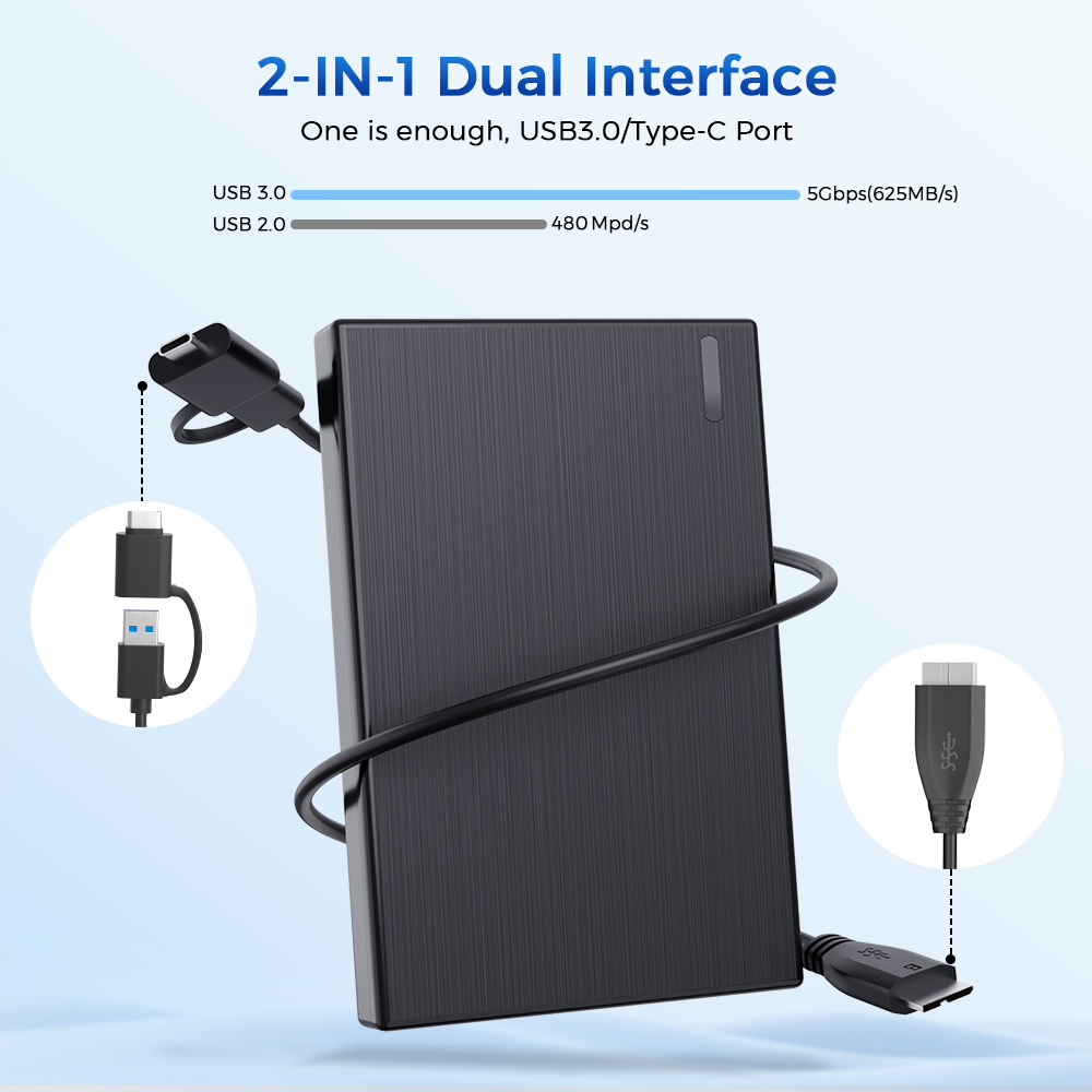 Specification: -Storage Capacity: 1TB (gigabyte) of storage space. -Compact Size: 2.5-inch form factor for portability. -Multi-Platform Compatibility: Works seamlessly with PS4, Mac, phones (Andriods with USB C), and Xbox devices. -High-Speed Data Transfer: USB 3.0/C for fast data transfer speeds. -Sleek Design: Stylish and durable casing. -No External Power Required: Draws power from the device it's connected to. -Backup Solution: Ideal for creating backups of important files. -USB-C Compatibility: Can connect to devices with USB-C ports via an adapter. -LED Indicator: Shows drive activity and connection status. -Supports Windows/MAC OS/Android -Dimensions:L124xW78xH14(mm), Micro USB3.0 cable length:50cm 💻💻Hard drive capacity calculations vary from system to system. For example, 1TB is 930GB on Windows and 918GB on PS5. 500GB is 465GB on Windows. This is normal, and is true for every hard drive on the market, and is not a false label. About Capacity: Hard disk vendors are using decimal arithmetic: 1MB = 1000KB, 1G = 1000MB calculated, but the operating system is using binary arithmetic: 1MB = 1024KB, 1GB = 1024MB. So there are some differences between display capacity and nominal capacity of hard disk products. However, this is allowed to exist, please do not doub this authenticity. (250GB ≈ 232GB, 320GB ≈ 298GB,500GB ≈ 465GB,1TB ≈ 930GB.) 💻💻 PS5 & XBox Series X/s games can't run directly on the hard disk due to game manufacturers' re-strictions. But you can run PS4 & XBox one games directly. As such, its role in the gaming device is to store and run PS4/Xbox 360/0ne games to make room for the Ps5/Xbox series X/s. 💻💻Make sure the cable is fully inserted into the connected device. Avoid reading failure or file loss due to poor contact. 1) Do NOT disconnect the hard drive enclosure or the hard drive during data transferring in case files missing orthe disk is damaged. 2) Support transfer rates up to 5Gbps when connected to a USB 3.0 port. 3) Works with USB 5V ± 5% power supply and exceeding the standard voltagerange may cause damage to the product or cause potential safety problems. 4) Please backup hard disk data in advance before hard disk partition or formatting.