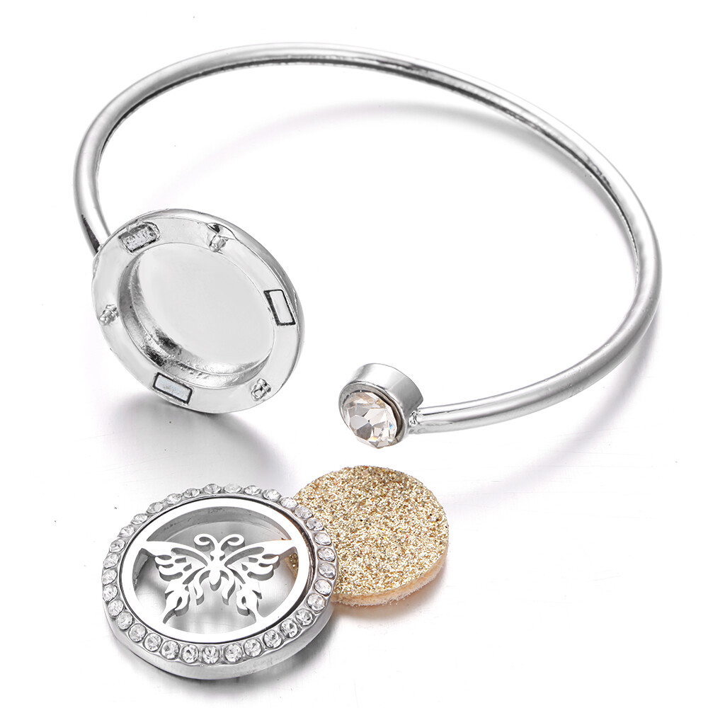 Love this stylish aromatherapy bracelet! The adjustable bangle fits perfectly, and the tiny locket holds essential oils so well—great for on-the-go relaxation. The rhinestones add a nice sparkle, and the stainless steel feels durable. Super easy to use with the included felt pad, and shipping was quick. Perfect unisex gift!