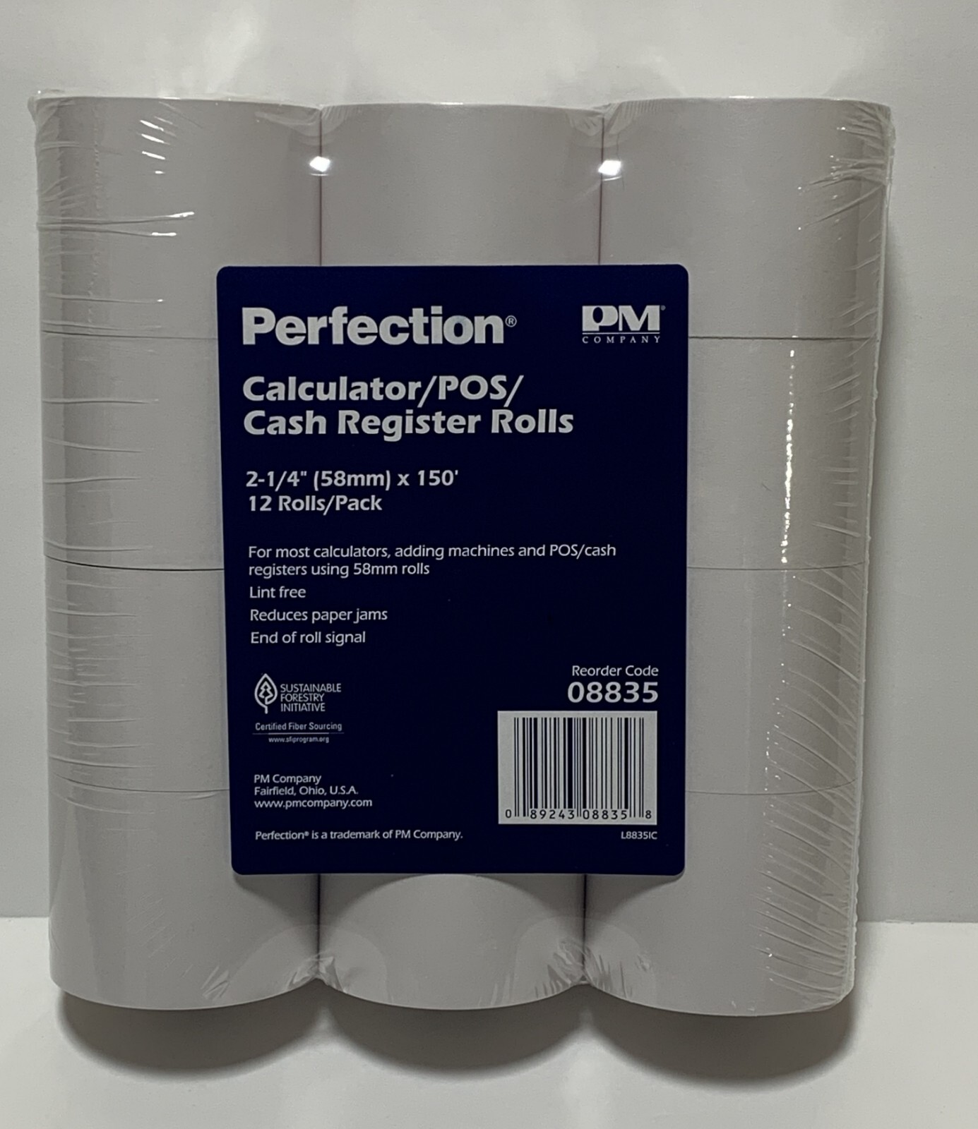 New! Perfection Calculator/POS/ Cash Register Rolls 2 1/4"/58mm x 150 ft 12 Roll Pack 2 1/4" (58mm) X 150' 12 Rolls/Pack For Most Calculators, adding machines, and POS/cash registers using 58mm rolls. Lint Free Reduces Paper Jams End of Roll Signal *Perfection™ is a trademark of PM Company FREE SHIPPING - FAST SHIPPING - DISCREET SHIPPING Tracking Number will be Provided at Time of Shipment In Stock Ready to Ship! We are NOT a drop shipper! Ships from our warehouse in Kentucky.