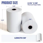 2-1/4 X 50 Thermal Paper - High-Quality Printing Paper Product Description: Our 2-1/4 X 50 Thermal Paper is the perfect solution for all your printing needs. Whether you require it for your POS system, cash register, or credit card terminal, this high-quality thermal paper ensures crisp and legible prints every time. Made from the finest paper stock, our thermal paper is designed to deliver long-lasting and reliable performance. Each roll is precisely cut to 2-1/4 X 50 feet dimensions, providing ample paper supply for extended use without frequent replacements. Key Features: Premium Quality Thermal Paper Dimensions: 2-1/4 inches x 50 feet Compatible with POS systems, cash registers, and credit card terminals Provides clear and legible prints Long-lasting and durable Precision-cut for reliable feeding and smooth operation Why Choose Our Thermal Paper: - Unparalleled Print Quality: Our thermal paper is specifically engineered to deliver exceptional print clarity and precision, enabling hassle-free reading of text, barcodes, and graphics. - Smooth Operation: With its perfect dimensions and precisely cut edges, our thermal paper glides effortlessly through your printing device, reducing the risk of jamming or misfeeds and ensuring a trouble-free printing experience. - Durable & Lo 🌟 Premium Thermal Paper & Thermal Receipt Paper 2 1/4 X 50: Crafted with 55 GSM BPA-free thermal paper for clear and durable receipts, ensuring your prints are sharp and easy to read. 🔧 Extensive Compatibility: Fits models like Verifone Vx520, Vx680, Ingenico iCT220, iCT250, Bamboo P25, H50, and many more 💰 Economical Bulk Pack: 50 rolls per case, providing excellent value for businesses. Stock up and save with our bulk packaging, ideal for high-volume printing environments. 📦 Versatile Application: Perfect for POS systems, credit card machines, and cash registers, ensuring flexibility in use across different business operations. 🔒 Durable & Reliable: Ensures long-lasting performance and consistent quality, reducing the need for frequent replacements and minimizing downtime. Our 2 1/4" x 50' thermal paper rolls are ideal for Clover receipt paper, credit card paper rolls, adding machine paper rolls, register tape, credit card machine paper rolls, cash register paper, POS, and Square terminal printer paper. Featuring high-quality thermal paper 2 1/4" x 50', Square terminal receipt paper, receipt paper rolls, Clover Flex receipt paper, adding machine tape 2 1/4", receipt tape, and reliable thermal printing paper for all your business needs. Choose our 2.25" x 50' thermal paper rolls, 57mm thermal receipt paper, Epson receipt printer paper, thermal printing paper, Clover paper rolls, papel térmico para impresora, and credit card receipt paper for consistent, clear prints. Our range includes Pax A920 paper, receipt paper & thermal receipt paper, Clover printer paper, thermal paper roll, POS paper, Square terminal paper, Clover Mini receipt paper, and 2 1/4" thermal paper rolls, ensuring smooth transactions. We offer 2.25" thermal paper rolls, thermal printer paper 2 1/4", Square receipt paper, receipt paper, papel japones, thermal printer paper roll, thermal paper receipt rolls, and Verifone VX520 thermal paper, perfect for various printing needs.