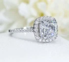2 Ct Cushion Cut VVS1 Moissanite Engagement Halo Ring 14K White Gold Plated