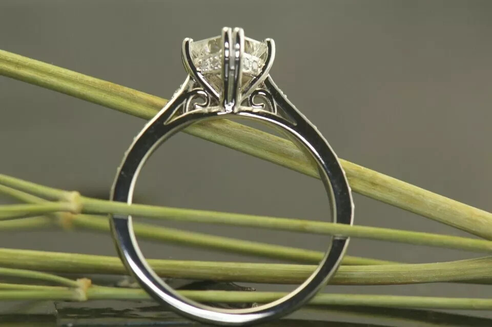 This beautiful women's engagement ring features a 2.00 carat princess charm bracelet with a prong setting style. The main stone is a lab-created moissanite with a sparkling white color and excellent cut grade. The ring is made of 925 silver with a 14K white gold plated finish. The ring is available in all sizes and can be personalized with a plating change and engraving as per the buyer's requirement. The gemstone clarity grade is loupe clean and the diamond color grade is D. The ring is nickel-free and has a certification from GRA. Order now and make your engagement special with this stunning piece from thepacificjewelry.