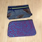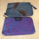 2 Estée Lauder Makeup Cosmetic Zippered Bags Cases New 2 Estée Lauder cosmetic bags 1 pink blue leopard zebra animal print zippered bag - plastic cover over zip pull 1 geometric blue green brown multicolor canvas bag polka dots