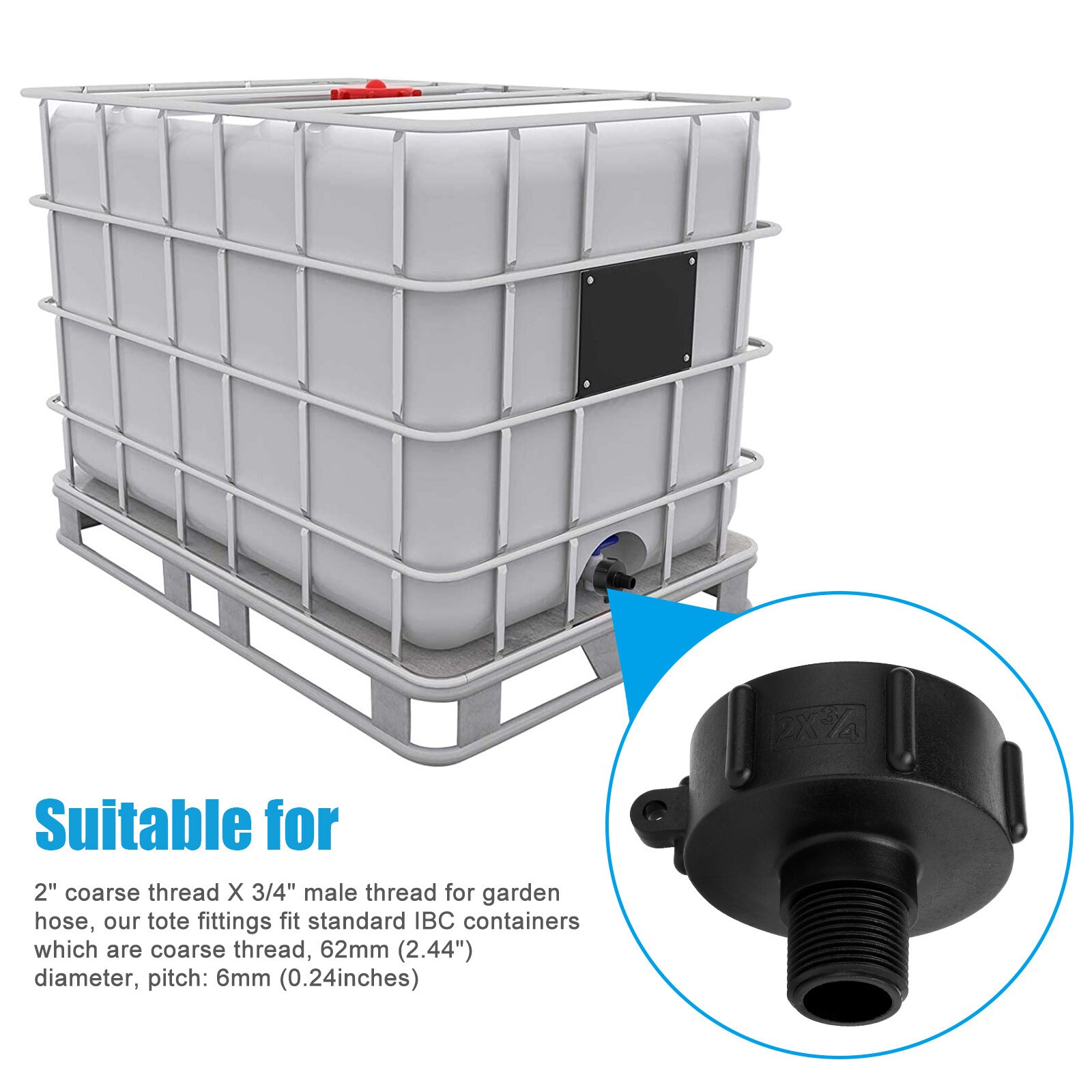 This adapter is a game-changer for IBC tank users! The food-grade plastic is sturdy and safe, and the 2" coarse thread fits perfectly with standard totes. The included rubber gasket ensures a tight, leak-free connection, and the 3/4" garden hose threading makes watering effortless. No tools neededโjust screw it in and go. Super convenient and way better than brass fittings. Highly recommend for hassle-free water transfer!