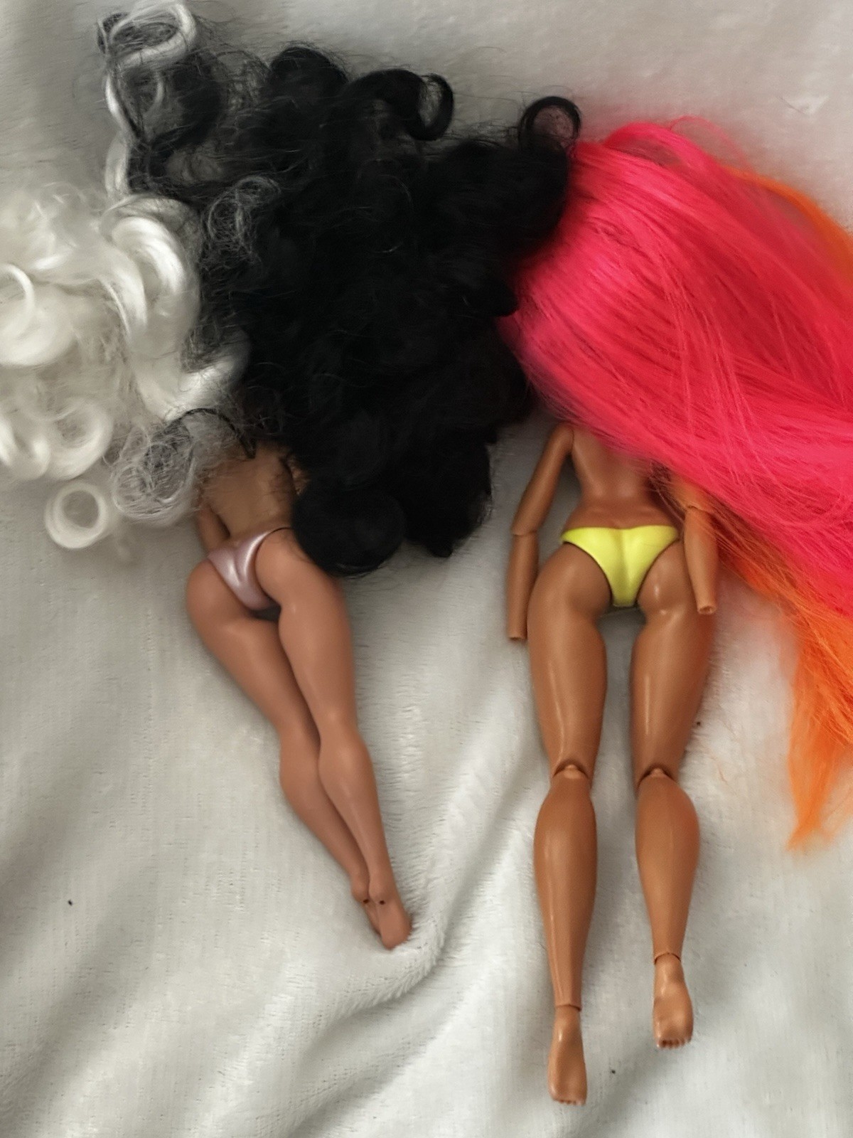 This product is a set of two L.O.L. Surprise! dolls that are missing their hands and are nude. They are plastic fashion dolls measuring 9 inches in size and come from the L.O.L. Surprise! franchise by MGA. These dolls are part of the 2010-2019 time period manufactured in China. Perfect for collectors or for children looking to add to their doll playsets, these dolls can be used for all occasions and are original, non-vintage pieces. You can buy hands online, they just pop on.
