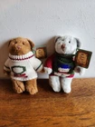 2 Osos Russ Berrie de Colección del Pasado "Gris/Marrón Navidad 7"