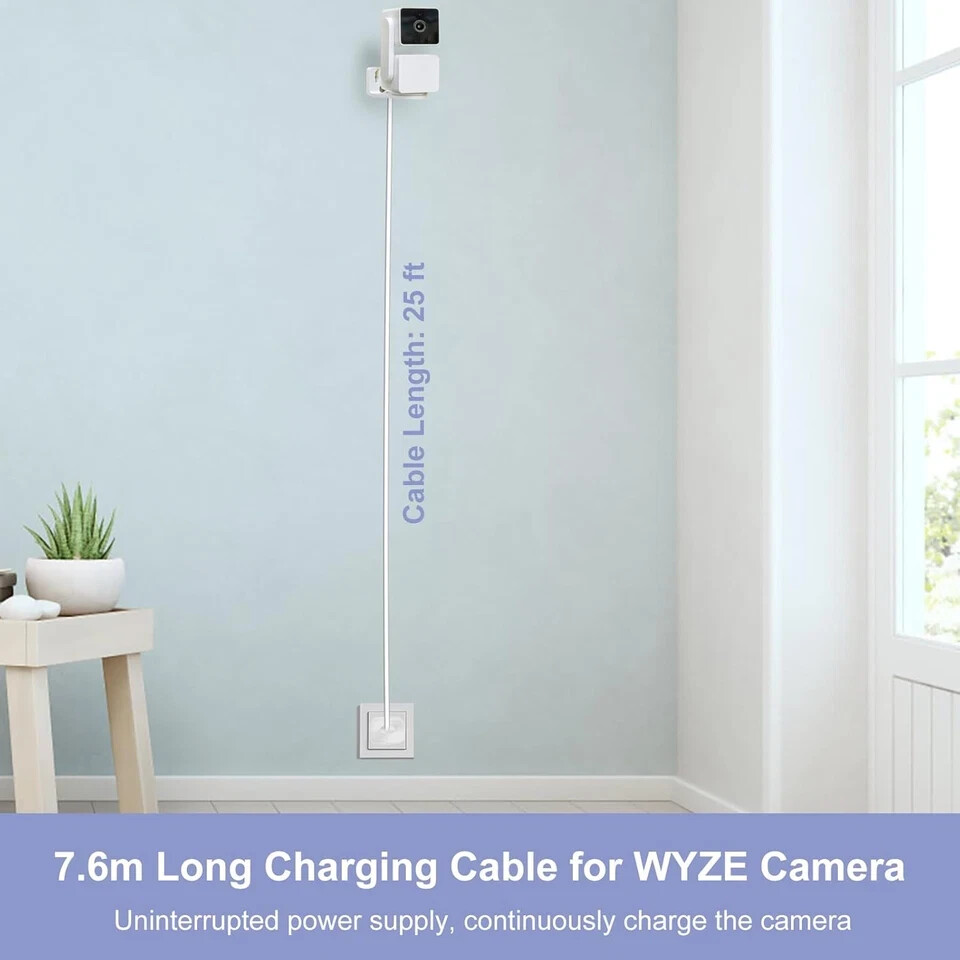 About this item 【Perfect Compatible】for WyzeCam,Wyze Cam v4,WyzeCam Pan,WYZE Cam OG,KasaCam Indoor,NestCam Indoor,Blink,Cloud Cam. 【Long Cable】 25 Ft/7.6m Long cable helps you install your wyze camera anywhere you want, and charge your camera continuously, no need to change the batteries anymore. 【Waterproof】The extension cable for Wyze Cam can be used indoors and outdoors, waterproof connector perfectly fits the charging port of WyzeCam,Wyze Cam v4,WyzeCam Pan,WYZE Cam OG,KasaCam Indoor,NestCam Indoor,Blink,Cloud Cam. It can work well whether it is in the wind, sun, rain or snow. 【Safety】Made with quality fire shell material and built-in safeguards, provides short-circuit protection and ensures safe charging, against over-current, over-heating and over-voltage, ensuring that your camera stays safe. 【What Will You Get】25 ft/7.6m camera charging cable,Cable Clips. Any problem, just feel free to contact us, we'll reply to you within 12 hours and spare no effort to satisfy you.
