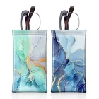 [2 Pack] Eyeglasses Pouch with Cleaning Cloth, Emerald Marble + Ocean Marble