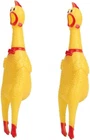 Come with 2 Packs :The chicken measures 12 inches long. Squeeze fun squawking chicken is a novelty toy. Perfect gifts for kids, adults and also a perfect chew toys for your dog. Connected at the center and may pull apart, especially with dogs who like to pull and tug. It is made from high quality durable rubber, safe product, can withstand countless of fun squeezing. The fun squawking & screaming can provoke laugher for kids and decompress for adults..it is also a squeaky chew toy for your lovely pet to play. there are a lot of high quality new products, safe for pet bites.ideal for budding comedians and fun-loving pranksters. suitable for all age groups.