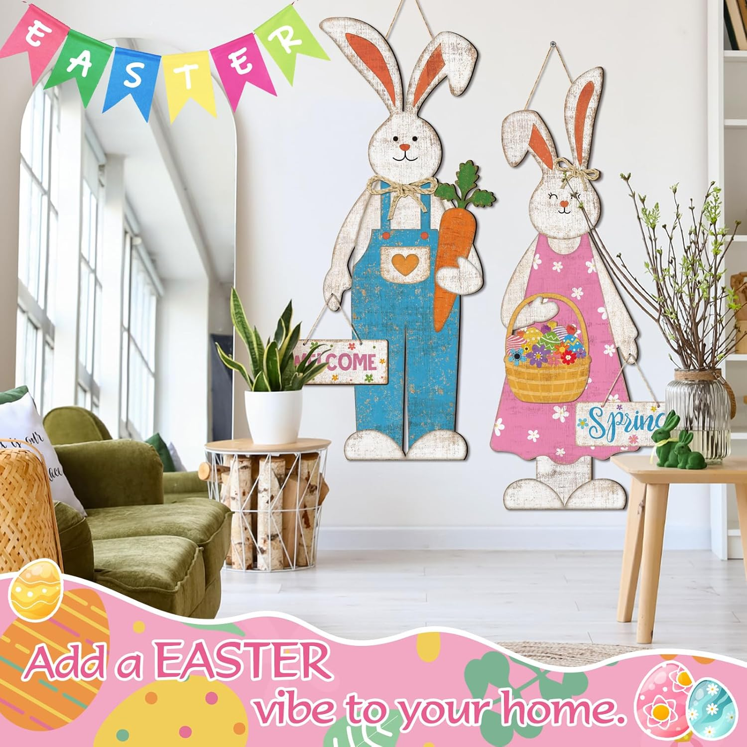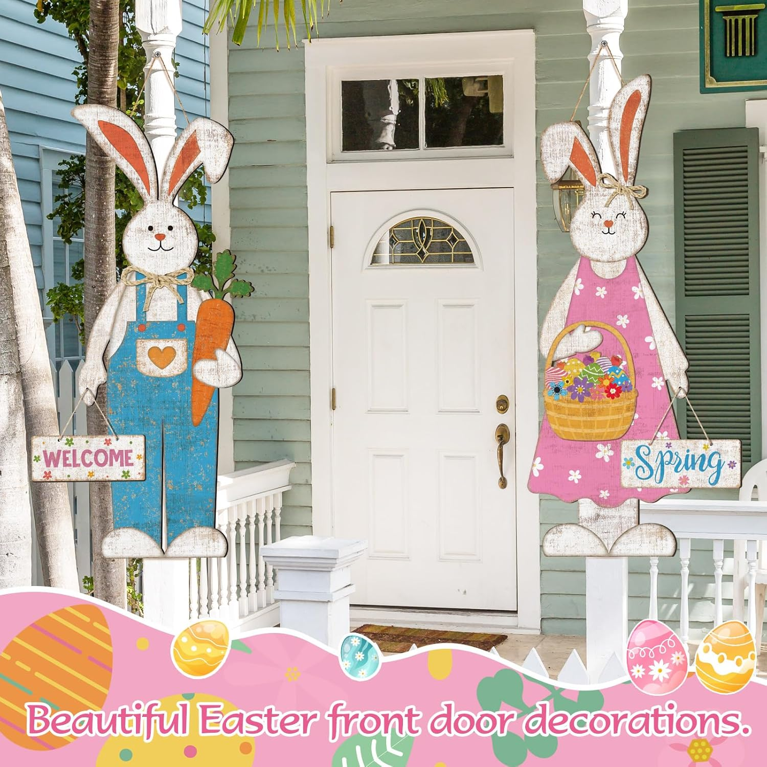 $ 28.142 Pcs Easter Bunny Hanging Sign Easter Wooden Front Door Spring Decorations Larg