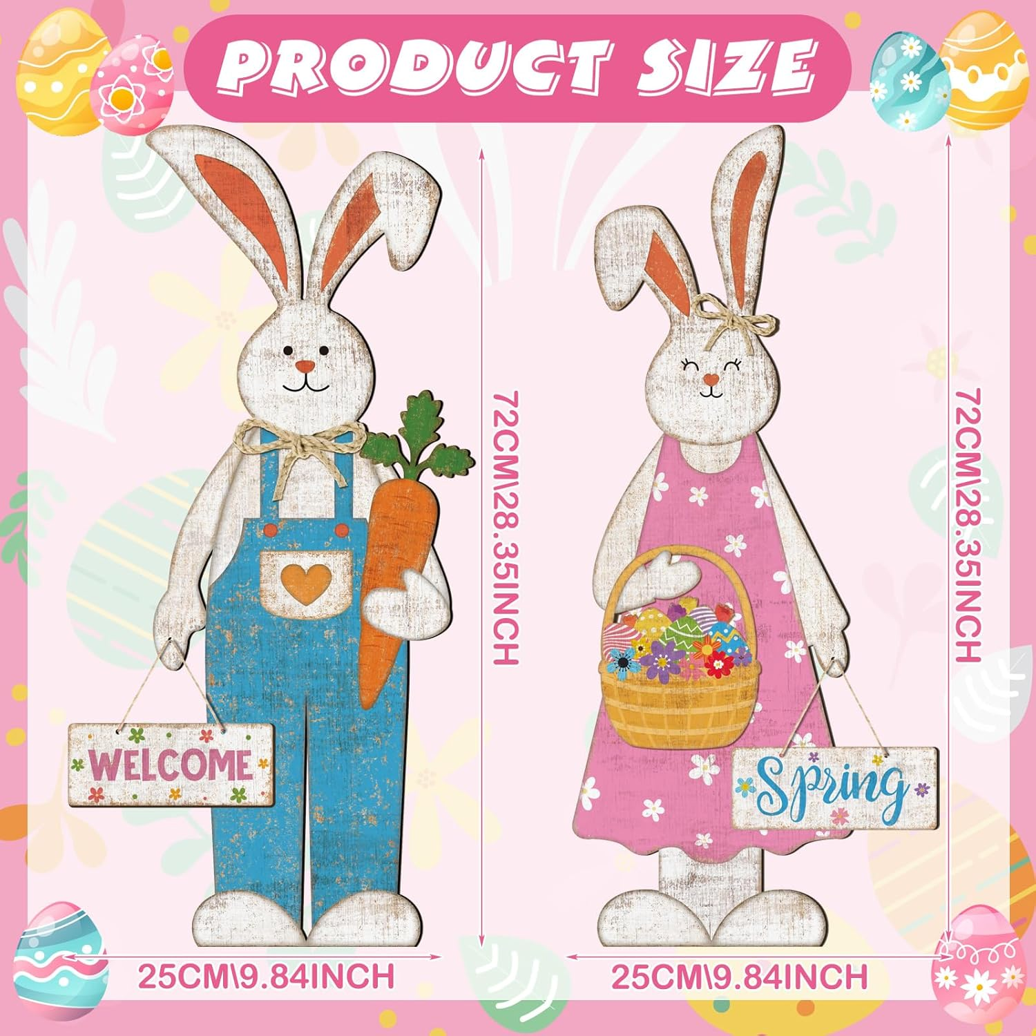 Store New Arrivals Add to Favorite View Feedback Contact Fast deliveries to the customer's home Quality customer service John Make the customers happy! 2 Pcs Easter Bunny Hanging Sign Easter Wooden Front Door Spring Decorations Large Hanging Rabbit Hanger for Front Door Bunny Porch Signs Holding Carrots Eggs for Home(Vintage) Description Practical Package Inclusions: your purchase will include 2 Easter door hanger sign decorations, presenting an image of bunny holding a carrot and Easter egg, offering double the festive spirit; Whether to use them in different places or gift one to a loved one, the options are endless Quality and Reliable Material: constructed from quality wood, our Easter wooden door sign offers durability and longevity; The reliable wood material ensures it can withstand the elements while still maintaining its charming aesthetic appeal, a decoration designed to last for many seasons to come Proper Sizing for Versatility: our Easter decorations fit properly on different door or wall, their adequate size ensures it serves as an attention grabbing ornament but without overwhelming the overall decoration, a properly proportioned festive touch Triangular Hook and Rope for Hanging: each Easter wooden sign is equipped with triangular hooks and a sturdy rope, this feature simplifies hanging the signs, allowing you to decorate your space effortlessly and quickly whether indoors or outdoors; We understand the importance of space saving designs, hence, our wall signs for Easter are foldable, which makes it convenient to store when not in use, minimizing storage space Ideal Gift for Your Loved Ones: if you are looking for a unique Easter gift, this set of 2 Easter decorations makes a beautiful and thoughtful gift, expressing your love and affection but are also functional, offering a charming decoration piece for their home or office Features: Our Easter wall decorations are designed with ropes, providing effortless hanging options. These practical signs can be hung on doors, walls, or other place you deem fit, creating a festive atmosphere while properly displaying your affection and festive spirit. Our Easter front door decoration is the ideal accompaniment to your Easter festivities. With their authentic wooden design and festive color, they add a romantic touch to your space, enhancing the joyful holiday ambiance. Specifications: Material: wood, rope Color: as pictures shown Size: as pictures shown Package includes: 2 x Easter wooden sign Notes: Manual measurement, please allow slight errors on size. The color may exist a slight difference due to different screen displays. Color Vintage Theme Easter Material Wood Recommended Uses For Product Porch ABOUT US We offer the best prices around on high quality products. Our E-store includes media such as books, movies, music and games while offering electronics, toys, sporting apparel, clothing, tools, general home, garden items and more. SHIPPING We are always working hard to ensure your package arrives as soon as possible. Please understand that some factors like weather, high postal traffic, and the performance of shipping companies are outside of our control. We offer free shipping to the lower 48 states and ship within 2 business days of payment, usually sooner. We do not accept P.O. Boxes. Please provide a physical address. For shipping outside of the continental USA, we only use eBay's Global Shipping Program. The item is shipped to KY and then sent to the rest of the world. International customers are responsible for all duties and taxes. Continue to 'check out' to calculate costs for shipping the item to your country. Messages regarding eBay's Global Shipping Program MUST be directed at eBay EXCLUSIVELY. RETURNS We offer a 30-Day Return Policy on items in which you are not completely satisfied with. You have the option of a full-refund or an exchange of the item. No returns are available on items shipped outside of the USA PAYMENT We accept PayPal. CONTACT US This page content is yet to come Please ad us to your favorite seller and visit again later Thank You CUSTOMER SATISFACTION We try our very best to make sure every customer is completely satisfied. If there's a problem, message us! We're happy to help. WE ACCEPT