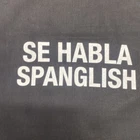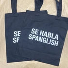 For $10 you get two tote bags. This fun and versatile tote bag is perfect for everyday use. With a width of 15 inches and a height of 16 inches, it offers ample space for your essentials while keeping them organized with its shoulder strap and black exterior color. Made of high-quality cotton, this bag is lightweight both durable and fashionable, featuring the iconic Se Habla Spanglish design. Whether you're going on a day trip or just running errands, this tote bag is a must-have accessory for any stylish and practical individual.