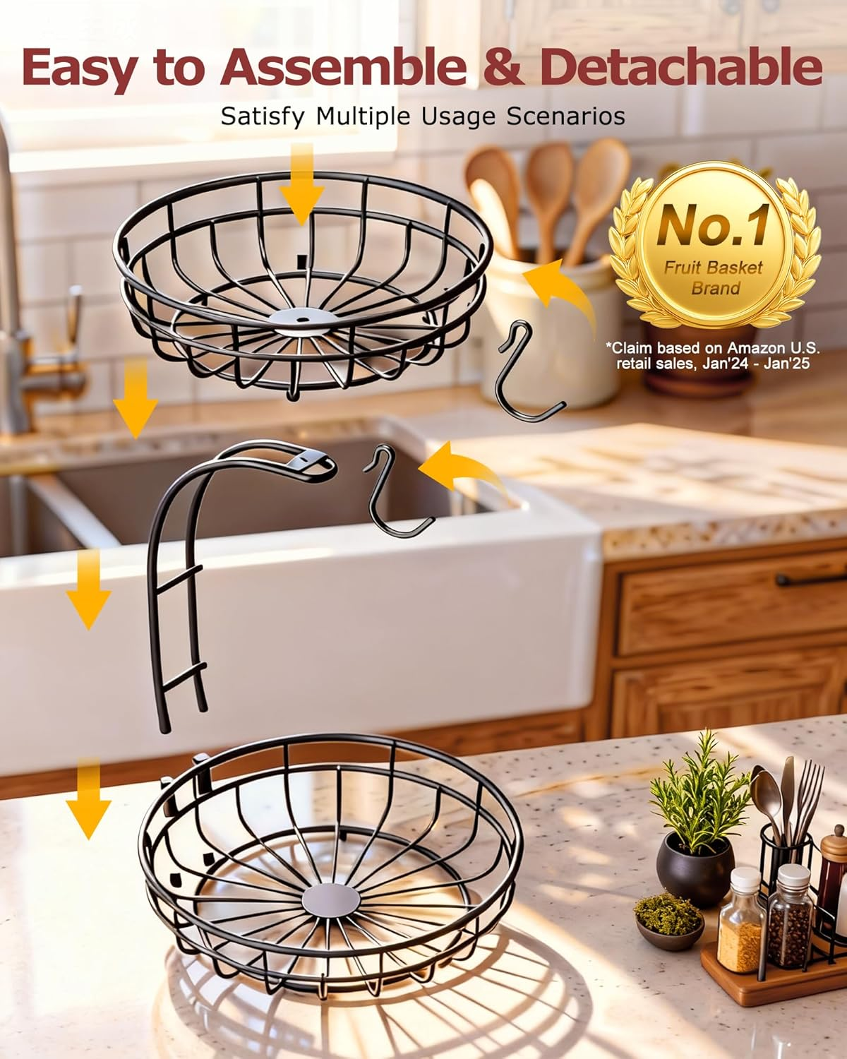 Store New Arrivals Add to Favorite View Feedback Contact 2 Tier Large Fruit Basket for Kitchen Counter with Removable Banana Hanger - Sturdy Iron Fruit Bowl for Kitchen Counter and Vegetable Holder, Fruit Holder for Kitchen Countertop, Black Description Item model number SGL-2T Included Components 1 Style Classic Number of Pieces 1 Bowl Material Iron Color Black Pattern Banded Product Dimensions 1.5"W x 2"H Material Iron Is Dishwasher Safe No Specific Uses For Product organizer Item Weight 1.7 pounds Shape Rectangle Size 2 Tier Set Name 2 tier fruit bowl set Is Microwaveable No Special Feature Durable 【Space-Saving 2 Tier Fruit Basket】 Maximize space with this 2 tier fruit basket. This fruit basket for kitchen counter clears clutter. Use as one unit or two separate bowls. 【Banana Hanger for Freshness】 Keep fruit fresh with this fruit holder. The hanger prevents bruising by keeping bunches away. Perfect height ensures bananas won't sit on produce. 【Stable Fruit Bowl for Kitchen Counter】 Assemble this fruit bowl for kitchen counter in 2 mins. The upgraded structure stays level. It solves common tilting issues. 【Sturdy Iron Art & Protection】 The rust-proof finish adds a "nice touch" to decor. Three raised feet keep fruit clean. It protects your butcher block from any scratches. 【Fits Under Cabinets & Guarantee】 At 11”x15”, it fits perfectly under low cabinets. We offer 45-day money-back and 360-day replacement. Your satisfaction is our top priority. Product description ABOUT US We offer the best prices around on high quality products. Our E-store includes media such as books, movies, music and games while offering electronics, toys, sporting apparel, clothing, tools, general home, garden items and more. SHIPPING We are always working hard to ensure your package arrives as soon as possible. Please understand that some factors like weather, high postal traffic, and the performance of shipping companies are outside of our control. We offer free shipping to the lower 48 states and ship within 2 business days of payment, usually sooner. We do not accept P.O. Boxes. Please provide a physical address. For shipping outside of the continental USA, we only use eBay's Global Shipping Program.The item is shipped to KY and then sent to the rest of the world. International customers are responsible for all duties and taxes. Continue to check out in order to calculate costs for shipping the item to your country. Messages regarding eBay's Global Shipping Program MUST be directed at eBay EXCLUSIVELY. RETURNS We offer a 30-Day Return Policy on items which you are not completely satisfied with. You have the option for a full-refund or an exchange of the item. No returns are available on items shipped outside of the USA. PAYMENT We accept PayPal. CONTACT US This page content is yet to come Please ad us to your favorite seller and visit again later Thank You CUSTOMER SATISFACTION We try our very best to make sure every customer is completely satisfied. If there's a problem, message us! We're happy to help. WE ACCEPT Copyright © 2021 AutoDS. | All Rights Reserved