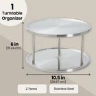 2 Tier Lazy Susan Turntable Organizer For Cabinet Revolving Spice Rack only Sophisticated Spice Carousel: The 2-Tier Lazy Susan Spice Rack Organizer beautifully complements your kitchen with its polished stainless steel design. This kitchen counter organizer is perfect for spice organization for cabinet or countertop use Efficient Meal Prep: Enjoy effortless accessibility with this spinning spice rack, the perfect kitchen spice organizer, which smoothly rotates to provide quick access to your spices. This spice turntable enhances meal preparation, making it more seamless and enjoyable during holiday entertaining Compact Holiday Storage: With a 10.5-inch diameter, this spice carousel organizer for cabinet maximizes space without sacrificing storage capacity. This seasoning organizer efficiently organizes spices, seasonings, and condiments, making it ideal for holiday kitchen organization Durable and Versatile: Crafted from durable steel, this tiered spice rack withstands everyday use while maintaining its sleek appearance. The two-tier structure of this seasoning organizer for cabinet serves multiple functions, from a condiment organizer for parties to a pill bottle organizer Perfect Gift for Home Cooks: This spice rack for countertop makes an excellent gift for home cooks and is perfect for holiday kitchen organization. The elegant design of this spinning spice rack for cabinet make it a delightful Christmas hostess gift for any culinary enthusiast The 2-Tier Lazy Susan Spice Rack Organizer is an elegant and practical addition to any kitchen. Constructed from durable stainless steel, this 10.5-inch diameter rotating spice rack features a freestanding design that makes it an ideal counter top organizer or cabinet spice organizer. With a height of 6 inches, it offers ample space for organizing your favorite spices, seasonings, and condiments, ensuring they are always within easy reach. This versatile spice organizer is not limited to the kitchen. It serves as a capable medicine bottle organizer or pill bottle organizer storage solution, enhancing your bathroom or home office organization. Its 360-degree rotating feature allows for effortless accessibility, making it a valuable addition to any room where space optimization is desired. Perfect for culinary enthusiasts and those who appreciate a well-organized home, the spice rack is particularly beneficial during the holiday season. It simplifies meal preparation for festive gatherings by keeping your seasoning organizer easily accessible, ensuring a seamless cooking experience. Additionally, its sophisticated design makes it a thoughtful Christmas hostess gift for kitchen enthusiasts or a delightful addition to any holiday kitchen organizer collection. The product does not include spices or condiments, focusing on delivering a robust and stylish storage solution. Whether you need a spice rack for cabinet or countertop use, this two-tier organizer is a reliable choice. Its polished stainless steel finish complements a variety of decors, seamlessly integrating into your space while enhancing functionality and aesthetic appeal. Embrace the holiday spirit with a kitchen spice organizer that not only declutters your space but also adds a touch of elegance to your home. Ideal for those who value both form and function, the 2-Tier Lazy Susan Spice Rack Organizer is the perfect blend of style and utility. Shipping We offer FREE shipping on all orders! We ship within Three business days of payment, usually sooner. We use a selection of shipping services such as UPS, FedEx, USPS etc. We only ship to the lower 48 states, no APO/FPO addresses or PO Boxes allowed. Local pickups and combined shipping options are not provided at this time. Return You can return a product for up to 30 days from the date you purchased it. Any product you return must be in the same condition you received it and in the original packaging. Please keep the receipt. Payment We accept payment by any of the following methods: PayPal Please pay as soon as possible after winning an auction, as that will allow us to post your item to you sooner! Feedback Customer satisfaction is very important to us. If you have any problem with your order, please contact us and we will do our best to make you satisfied. Contact Us If you have any queries, please contact us via ebay. We usually respond within 24 hours on weekdays. Please visit our eBay store to check out other items for sale! Thank you for shopping at our store.