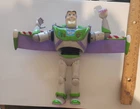 Here are 2 VTG Rare Disney/Pixar Toy Story Buzz Lightyear Figure Moving Head Arm. 6 1/2 inches and 3 inches tall. and his back decor is 7 inches. There is no helmet.