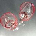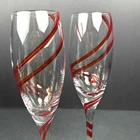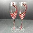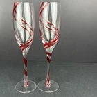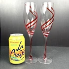 Elevate your champagne experience with these two stunning red double swirl champagne flutes from Pier 1. Made of high-quality glass and hand-blown to perfection, these flutes are perfect for any occasion. The contemporary design and round shape make them a stylish addition to any collection. Each flute has a capacity of 8 oz and stands at a height of 9 3/4”. The set includes four champagne flutes, perfect for service for four. These glasses are a rare find and will definitely be a conversation starter at your next gathering. Hand wash only for long-lasting use. Condition is used but excellent. No chips scratches or utensil marks. Let me know what question you have. Blessings to you! ♥️♥️🤍🤍🤍♥️♥️♥️