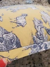 This is a pair of Vintage or possibly Antique Toile de Jouy depicting centuries old French Country Life Sofa Pillows. The yellow and blue square pillows depict a country life theme with a toile pattern, perfect for adding a touch of French country style to your decor. They are lare 20 x 20 inches in size plus an inch extra skirt or hem around them. They appear to have been machine sown for most part, but the closing sides are definitely hand stitched. These pillows have been carefully washed and restored. There is a small light stain, barely noticeable, on one of the pillows. Please see pictures where I point to the stain. These are stunning and would fit perfectly in an antiquated setting.