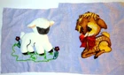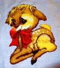 set of 2 punch needle finished projects. Fantastic work, background fabric may have stains, vintage, lovely finished images. You can add these applique patches to a western skirt for square dance skirt, swing dance skirt, circle skirt or Frame for wall hangings or Add them to a denim barn jacket or purse. OH so Cute, Versatel. Can be framed as a wall hanging or add to a pillow top. Very whimsical images, delightful, colorful. Your items will arrive wrinkled, folded in shipping. From a pet friendly home. playful, great workmanship, preowned vintage used handwork. Measures near approximately 11" by near 11" on average not exact. Much prettier than images I could capture, the lamb has button eyes. WOW, oh so cute .... check out other punch work listed, by the same artist. Christmas Lamb and delightful Holiday Fawn.