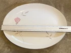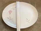 This listing is for a set of Mikasa Fine China serving dishes in the discontinued Primrose pattern 8194 which features a white plate with a silver trim band at the edge and a pink rose flower with grey leaves and stem. There is an oval serving platter that measures about 16 1/4" by 12 1/2". The one edge is missing some of the color on the silver band at the rim. There is also a round chop plate which measures about 12 1/4"" in diameter. Both pieces are in nice gently used condition. I have more pieces in this pattern. I will gladly combine shipping if you request an invoice before paying. Thanks for looking!