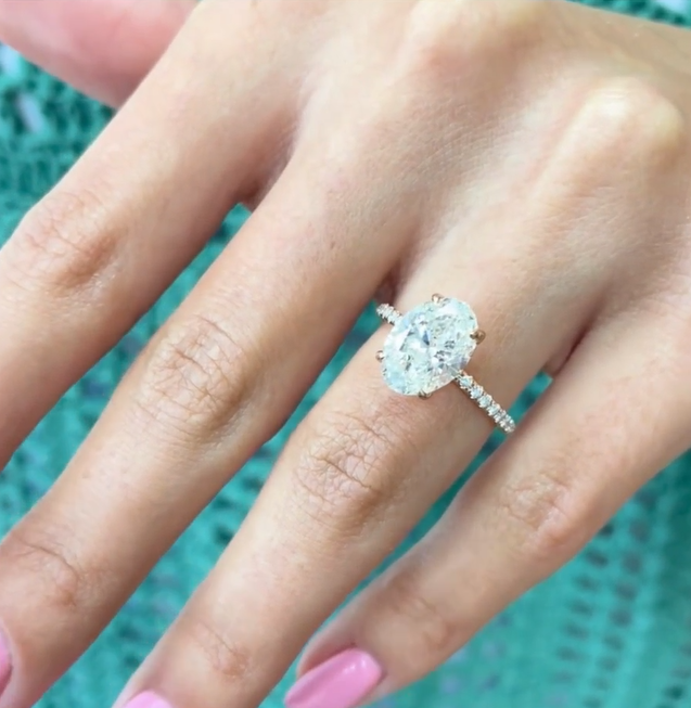 eBay Ecommerce Description 2.0 Carat IGI Certified Oval Cut Hidden Halo Diamond Solitaire Ring Lab Grown The Ring Comes with IGI Certificate that shows Authenticity of the Diamond Metal: 14K Solid Yellow Gold (Stamped 14K) If you want the ring in White or Rose Gold, please let us know Ring Size Options: 4 to 9 (Quarter Sizes are available) If you cannot find your ring size, please contact us The Ring has a Hidden Halo The Total Carat Weight on the Ring and Halo: 2.12CTW (Center Oval Diamond Included) Diamond Information: Lab Grown Diamond with IGI Certificate Center Oval Diamond Carat Weight: 2.0CTW Diamond Cut: Oval Diamond Size: 10.25mm x 6.80mm (Approx.) Diamond Color & Clarity: F Color, VVS2+ Cut: Excellent The Ring comes in a Gift Box Please contact us with any Customization Requests Thanks for your interest Sku: F1949