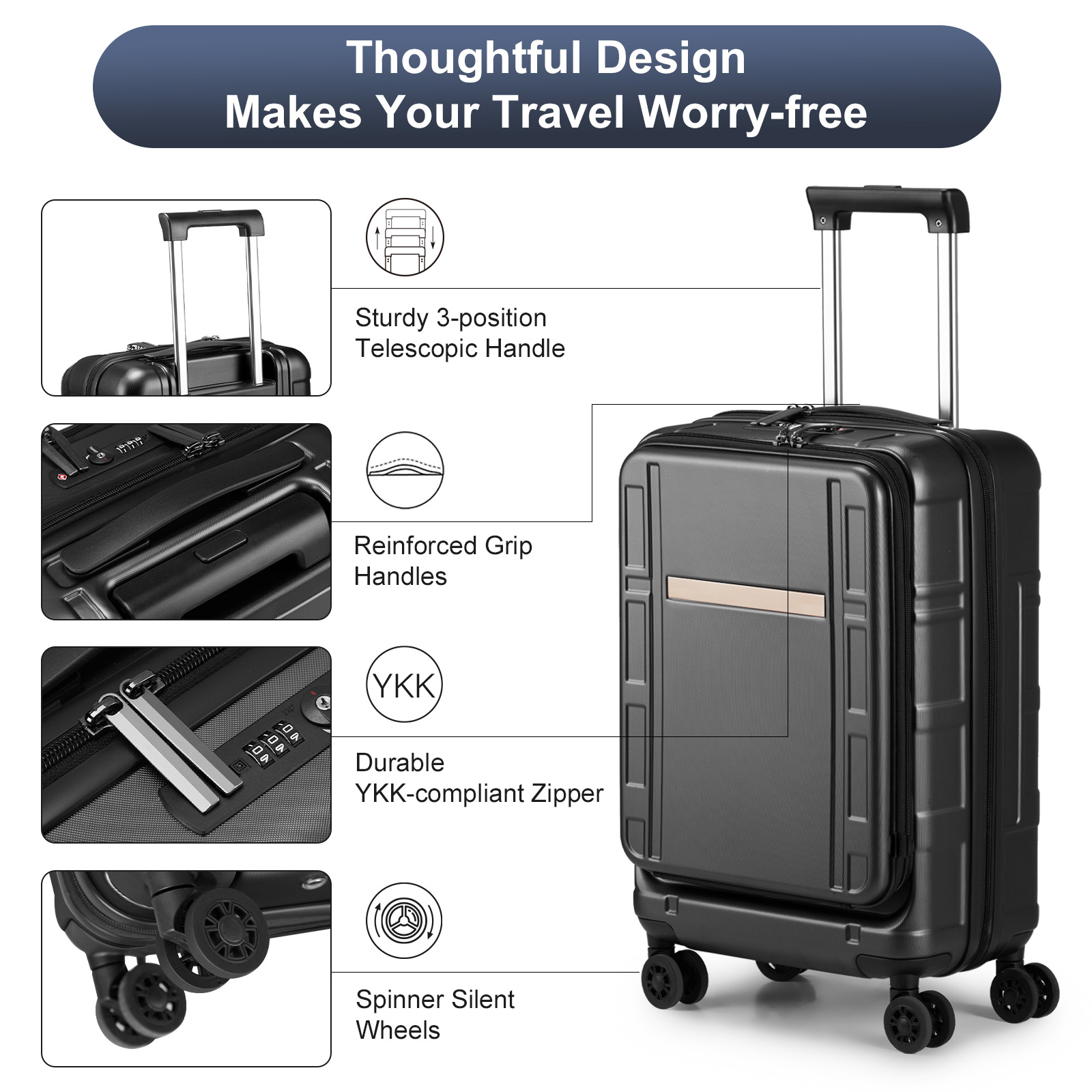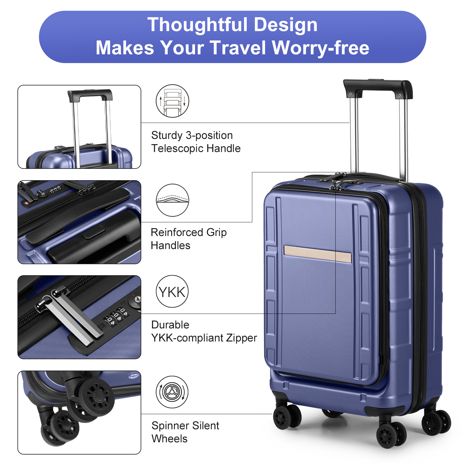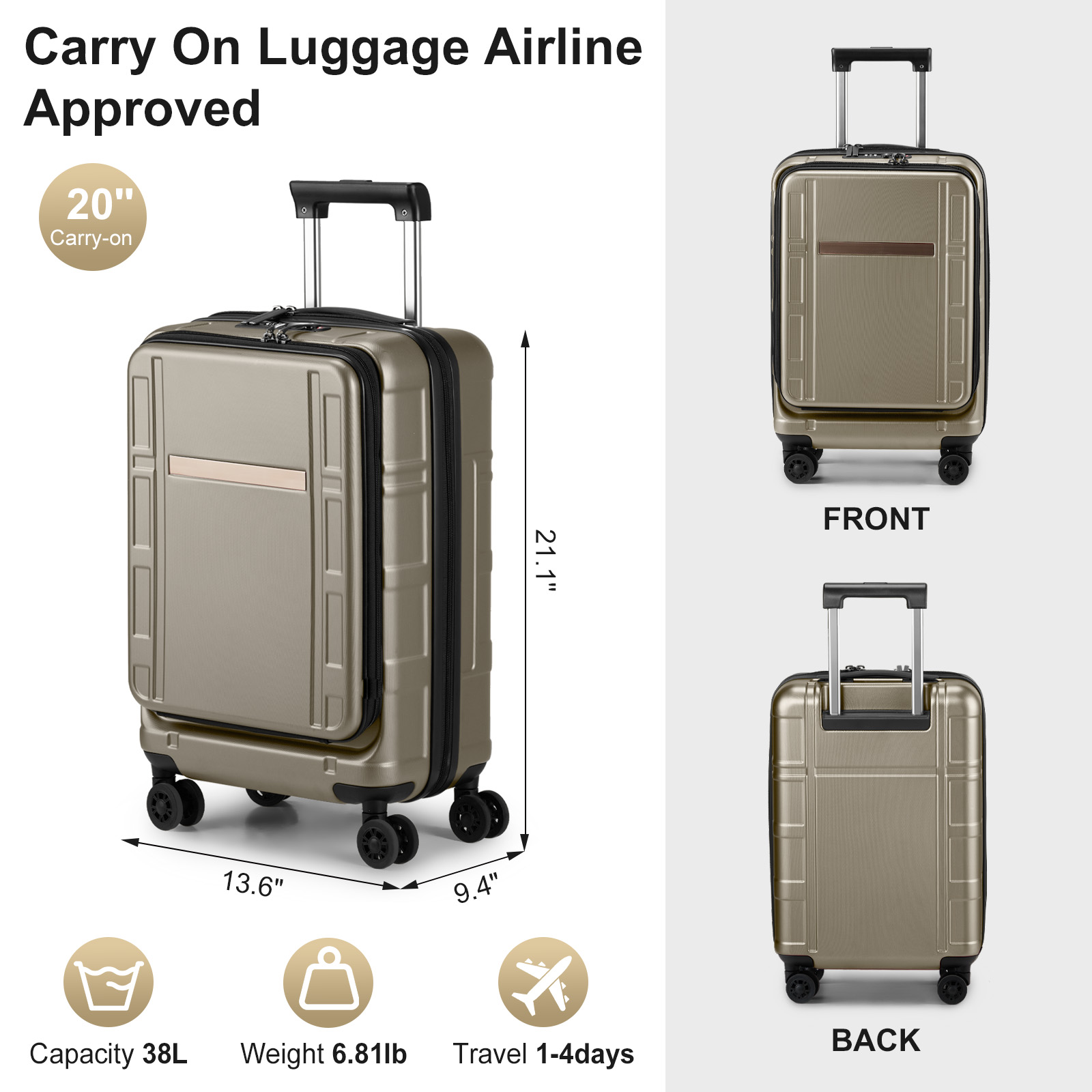 listing template VISIT OUR STORE SIGH UP FOR EMAIL 20" Carry On Luggage with Front Pocket Hard Shell Suitcases with Extensible Introductions: This luggage is ideal for personal and business travel which is in line with airline standard. It will transport your travel essentials effortlessly and stylishly. Features: 1.Made of lightweight and durable PC+ABS material, with an impact-resistant hard shell, 2.A recessed TSA-approved lock is found on the side of the case that allows only TSA agents to open and inspect your bag without damaging the lock. 3.360° Silent Spinner Wheels provide superior maneuverability, easy and smooth movement in any direction. 4.Handles:Telescopic, 3-step adjustable recessed handle 1 attached cushioned comfort-grip top handle. 5.Side bumper feet:The bumper feet are strategically placed to elevate the luggage slightly above the ground, preventing wear and tear over time. 6.FRONT LAPTOP COMPARTMENT DESIGN: this carry on luggage has a quick-access front pocket ideally suited for your items, perfect for the frequent business travelers. Specifications: Measures: Size: 20in Travel days: 1~4days Material: ABS+PC Lock Type: TSA Lock & Mechanical Lock Package Includes: 1 x 20" Luggage You might like this more>> utdoor Folding Portable Fish Hunting Cleaning Cutting Table $73.99 Outdoor Canopy 10x20' Party Tent 6 Wall Pavilion W/2 Doors $82.90 Adjustable Artist Aluminium Tripod Easel Stand WhiteBoard $17.59 Adjustable Large Artist Painters Wood Table Easel Floor Stand $28.99 16" Kitchen Sink Faucet Chrome Swivel Spout Pull Down $33.99 Tempered Glass Oval Side Coffee Table Shelf Chrome $52.99 Shipping Policy 1. Ship worldwide from New Jersey by reliable shipping companies -- USPS, UPS, FEDEX, DHL, etc., and only to VERIFIED PAYPAL ADDRESS. Transport Delivery ETA. Package handling only takes 1 business day at our warehouse, so please make sure entering correct payment and shipping information before checking out. Once your payment is completed, we are not going to accept any more changes to your order. 2. International Buyers – Please Note: a. Import duties, taxes and charges are not included in the item price or shipping charges. These charges are the buyer's responsibility. b. Please check with your country's customs office to determine what these additional costs will be prior to bidding/buying. 3. Please check your shipping address carefully before checkout, it can't be changed if order completed. 4. Orders placed on weekend will be shipped within 2 days.Notification of shipment with tracking number will be sent to buyers. 5. Standard shipping: 2-7 business days Expedited Shipping: 2-3 business days One-day Shipping: 1 business day International shipping: Varies 6.Ship within 1 business day once payment completed. Notification of shipment with tracking No. will be sent to buyer. 7.We offer discounts for combine shipping. Please contact us first if you need combine shipping, and an invoice with discount will be sent to you. 8.Please allow 5 business days for delivery to US destinations on any eBay orders and 14 business days for delivery to any International destinations. We highly recommend our buyer choose priority/expess mail for international delivery which is much more stable. Return Policies 1. Refunds given only if item DOA and cannot be replaced via PAYPAL . If so, Please contact us with 5 days since you receive the item and and return to us within 30 days from the delivery date for exchange or refund. 2. If you need return, please contact our customer service representative, let us know the detailed problem and send us some pictures for confirmation. Payment Payment should be sent within 8(EIGHT) days of auction closing. Feedback If you are dissatisfied for any reason, please do not be quick to leave negative/neutral feedback. We work hard to make sure EVERY CUSTOMER 100% SATISFIED and resolve any problem for you. Work Time Work Time: Monday to Saturday About Us | Newsletter| Feedback| Contact Us Copyright © 2021 Housepro All rights reserved. 无标题文档 20" Carry On Luggage with Front Pocket Hard Shell Suitcases with Extensible Introductions: This luggage is ideal for personal and business travel which is in line with airline standard. It will transport your travel essentials effortlessly and stylishly. Features: 1.Made of lightweight and durable PC+ABS material, with an impact-resistant hard shell, 2.A recessed TSA-approved lock is found on the side of the case that allows only TSA agents to open and inspect your bag without damaging the lock. 3.360° Silent Spinner Wheels provide superior maneuverability, easy and smooth movement in any direction. 4.Handles:Telescopic, 3-step adjustable recessed handle 1 attached cushioned comfort-grip top handle. 5.Side bumper feet:The bumper feet are strategically placed to elevate the luggage slightly above the ground, preventing wear and tear over time. 6.FRONT LAPTOP COMPARTMENT DESIGN: this carry on luggage has a quick-access front pocket ideally suited for your items, perfect for the frequent business travelers. Specifications: Measures: Size: 20in Travel days: 1~4days Material: ABS+PC Lock Type: TSA Lock & Mechanical Lock Package Includes: 1 x 20" Luggage Shipping + 1. Ship from New Jersey by Standard Int'l Shipping, and only to VERIFIED PAYPAL ADDRESS . 2.International Buyers Please Note: a. Import duties, taxes and charges are not included in the item price or shipping charges. These charges are the buyer responsibility. b. Please check with your country customs office to determine what these additional costs will be prior to bidding/buying. 3. Please check your shipping address carefully before checkout, it can't be changed if order completed. 4. All items will be shipped to buyer's ebay address. Before you pay, please make sure your address in ebay match the address you would like us to ship to. 5. Ship within 1 business day once payment completed. We do not ship on weekends or public holidays. 6. Item normall