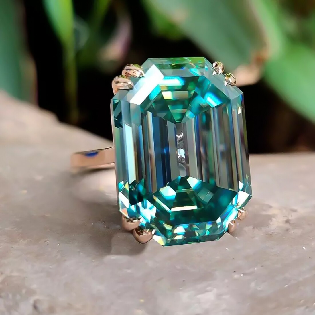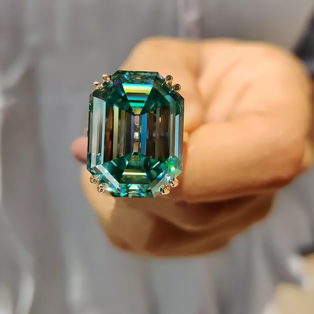 18 Ct Emerald Cut Blue Diamond Ring 925 Silver Grand Gift for Anniversary