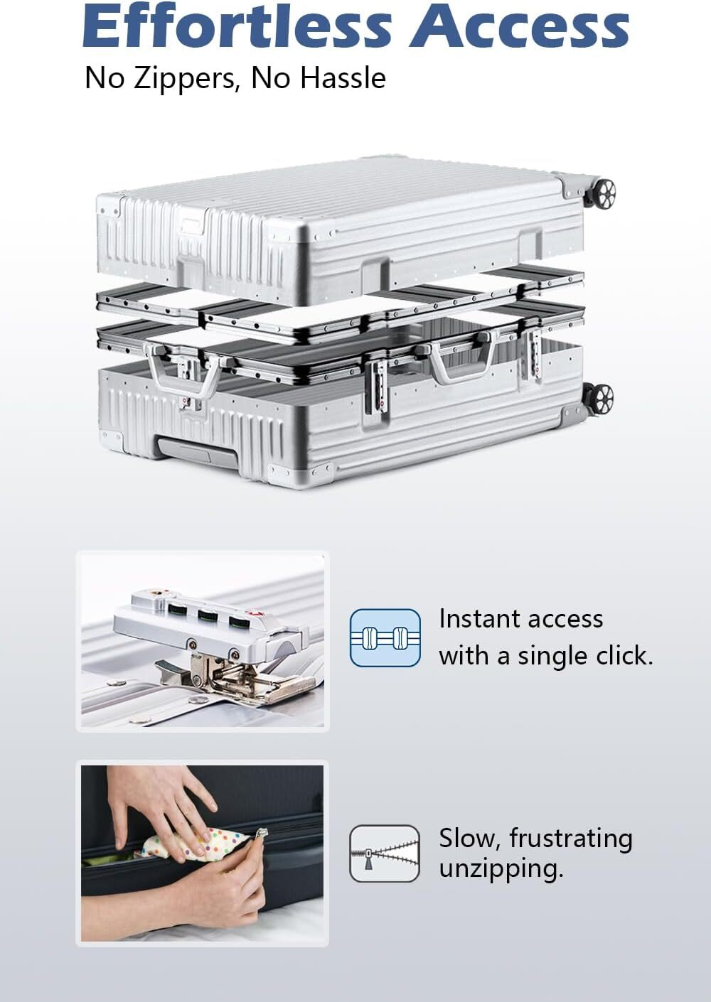 Common Questions Q: Why might measurements differ from those on the product page? A: Slight measurement variations can naturally occur. Additionally, our listed dimensions include all parts of the suitcase, such as wheels and handles, which might not be accounted for in simple measurements. Q: Is it normal for the handle to have some movement? A: Yes, this is by design. A slight handle movement ensures long-term durability. It allows for temperature changes and side forces during travel. If the handle were too tight, it could become stuck or break over time, so this small flexibility is beneficial. Q: Should there be a key for the lock? A: No key is included because the suitcase features a standard TSA-approved lock. This lock is designed for TSA agents to open for security checks if needed, while you set your own combination for personal use. This ensures both security and convenience during your travels. Q: Is this an all aluminum suitcase? A: We offer two versions of this suitcase: an all aluminum model and a PC model with aluminum frame. You can choose between these options in the color selection section of our product page. For the PC version, the main body is made of premium polycarbonate (PC) while the frame, telescopic handle, corner guards, and other structural components are crafted from aluminum.