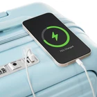 This lightweight carry-on set is a game-changer for travelers! The sleek light blue ABS design is durable yet stylish, and the expandable feature adds extra packing space when needed. I love the built-in USB port for charging on the go—so convenient. The included travel bag is perfect for keeping essentials organized. Despite its spacious interior, it's surprisingly lightweight and fits easily in overhead bins. Perfect for short trips or as part of a larger luggage set!