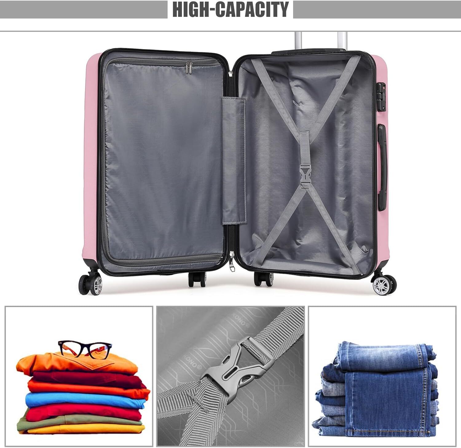 【20 INCH SPINNER LUGGAGE DIMENSIONS】Overall: 20.3" x 15" x 8.3"(including wheels and handles). Packing: 18.3" x 14.76" x 8". Weight: 5.5 lbs. CAPACITY: 35.7L. Kono international carry on luggage maximizes our packing power and meets most carry-on size restrictions for those traveling domestically and looking to stay light. Suitable for 3-5 days trips! 【TELESCOPIC HANDLE+SHORT HANDLE】Adjustable 3-level aluminum telescoping handle allows you to quickly maneuver in tight spaces and it's sturdier than most of the telescoping handle on the market. The soft side handles for easy carrying when in a hurry, or it can be really handy when lifting the suitcase with heavy weight. 【CARRY ON LUGGAGE WITH LOCK + WHEELS】Side-mounted TSA LOCK with smooth YKK zipper act to deter theft, ensuring that only you or a TSA agent have easy access to your belongings when traveling, added security and convenience. Multi-directional spinner wheels to provide 360º effortless mobility and ease on traveler's wrist, re-engineered lightweight. 【PRATICAL INTERIOR FOR WELL ORGANISED】Kono hard shell carry on luggage designed with 2 roomy fully lined compartments. The packing straps hold your clothes in place, a zipper mesh pocket for anything you want to keep separate. Not only a perfect small luggage for yourself, also a cute gift for your families, friends, or school children. Product Dimensions 25.59 x 21.65 x 29.53 inches Item Weight 5.5 pounds Department Unisex