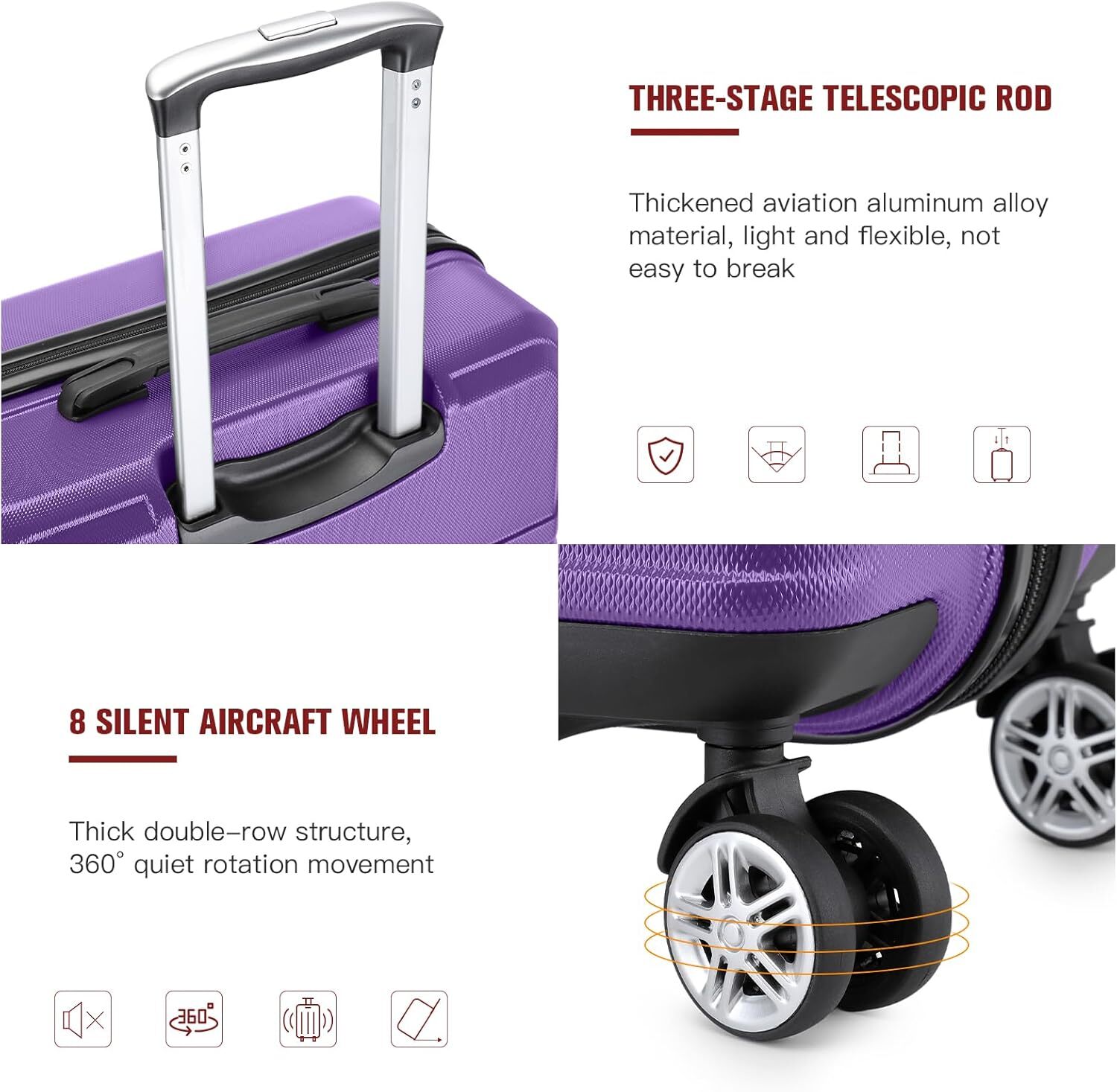 This carry-on is a game-changer for quick trips! The ultra-lightweight design makes it easy to lift, and the smooth spinner wheels glide effortlessly. The TSA lock adds peace of mind, while the spacious interior fits everything I need for a long weekend. The telescopic handle feels sturdy, and the hard shell keeps my belongings protected. Perfect for avoiding checked bag fees—highly recommend for frequent travelers!