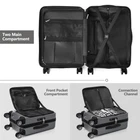 Specifications Place of Origin China Main Color Gray Main Material ABS Dangerous Goods #dangerFlag# Dimensions & Weights Assembled Length (in.) Not Applicable Assembled Width (in.) Not Applicable Assembled Height (in.) Not Applicable Weight (lbs) Not Applicable Product Features Luggage is made of premium ABS hard shell material, which is lightweight, flexible and has strong wear resistance and impact resistance. 20 inch carry-on luggage size: 13.8 x 8.9 x 22 ' weight: 11 lbs, complies with airline regulations. Portable carrying case size: 12.1 x 6.8 x 9.5 ”. Perfect suitcase for short trips, business trips. The front pocket compartment can be opened for easy access to personal items and electronic devices while on the go. Compared to traditional luggage, this suitcase can be opened from front compartment to main compartment, making it convenient for you to use in any tight space. Carry-on luggage comes with a 3-dial TSA approved lock for security. TSA lock with USB charging port(power bank not included), so you can charge mobile device on the go. Double wheels are more durable and can withstand greater pressure. 360° spinner wheels are easy to maneuver and adapts to various road conditions. Whether pushing or pulling, it moves easily. TPE soft handles on the top and side of the suitcase make it easier to lift the suitcase up steps or into luggage rack. Note: This product does not include the charging cable and mobile phone as shown in the picture. Description HOW TO RESET THE TSA COMBINATION LOCK 1. The lock is set to 0-0-0 at the factory. 2. Make sure the dials are rotated at 0-0-0 or any other code you've set before resetting it. 3. Use a pen or something pointed to press the reset hole adjacent to the dials. 4. Enter your new code by rotating the dials 5. Push the key button once and your code is now set. 6. Scramble the dials and test your new code to be sure the correct one is set.