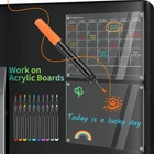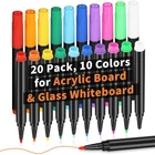 20 Wet Erase Markers in 10 Bright Colors, 1mm Fine Points; The acrylic boards are not included in the package. [Write Smoothly on Any Non-porous Surfaces] These chalk pens are permanent on porous surfaces, so we recommend you use the markers on non-porous erasable surfaces such as smooth acrylic dry erase board, whiteboard, car window, glass, mirror, lable, etc. Never use any erasable markers on chalkboard paint or cheap chalkboards. Test in a corner first. [Vibrant Colors, Fun & Easy to Read] 20 fine tip dry erase markers in 10 bright colors are visible on both light background and dark background. Bright color can last long time. Neon paint markers will make your designs bold & eye-catching. [1mm Fine Pen Tips] These chalk board marker pens with 1mm (0.04 inches) fine points work great on small date writing box. Whiteboard pens allows you to write on many smooth reusable surfaces instead of writing on paper. No oil leakage, no blockage. [Water-Based, Easy to Erase with Wet Towel] Car window markers for glass washable is extremely easy to erase with just a piece of soft wet cloth/towel or wet tissue dipped with plain water, no ghosting, no smudge, no stains. [Satisfaction Guaranteed] We are very confident with chalk markers for blackboard and also your satisfaction is all that matters to us. If you find any problem or unsatisfied, feel free to contact us. We'll provide you the best service or the refund.