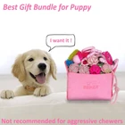 Help your active and powerful dog release their energy and maintain their dental health with our durable rope toy. It's a great investment for their overall well-being. Delightful Toy Selection: Our pack consists of 20 adorable and entertaining toys tailored for puppies and small dogs. Featuring a wide variety of choices like rope toys, a treat-filled ball, rubber toothbrush bone toy, a tug of war toy, a pacifier toy, and teething rings, your furry companion will always stay entertained. Encourage Dental Wellness: Puppies have a natural inclination to chew, and our toys cater to this need. The eco-friendly cotton rope toys and rubber bone toys equipped with soft spikes offer gum massage and stress reduction. These toys clean their front teeth while also helping eliminate dental plaque in difficult-to-reach spots, preventing decay and promoting healthy chewing habits. Engaging Play Sessions: Keep your dog physically healthy and mentally alert with our diverse rope toys, ideal for tug of war, fetch, and chewing. Our ball toy and tug toys can double as training devices to maintain focus and engagement. These toys contribute to a stronger bond between you and your furry family member, providing endless hours of fun and quality time. Charming and Long-lasting Chew Toys: Our set features 5 rubber-encased teeth-grinding toys, more durable than conventional toys, including 2 teething rings and other appealing shapes like pacifiers, candies, hearts, and bones. These toys are guaranteed to hold your pet's interest and offer endless entertainment. Reliable Quality and Customer Satisfaction: Crafted from organic cotton and natural rubber, our dog toys undergo strict quality and safety testing. We are sure that your dog will love them; however, if you have any doubts or questions, our exceptional customer service team is ready to help.
