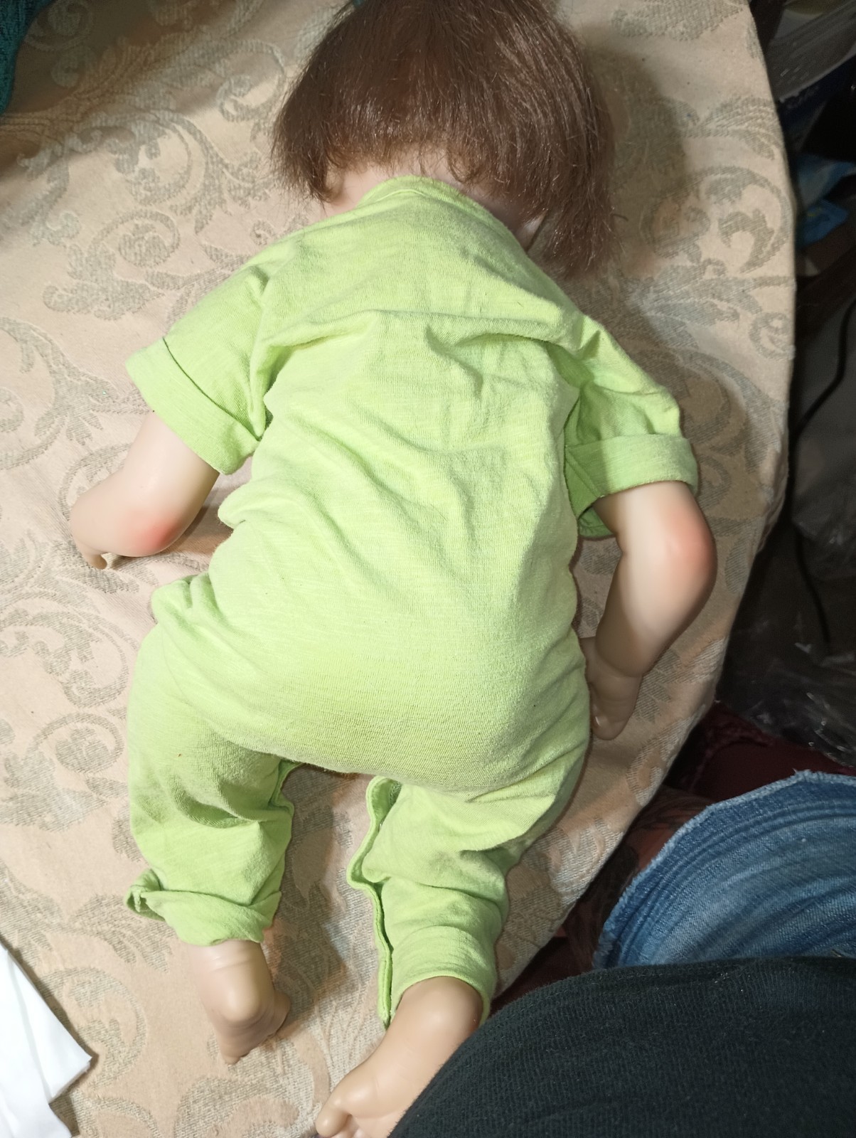 This 20' Realistic Reborn Baby Doll is a lifelike and charming baby girl doll perfect for all occasions. Made from vinyl and silicone, this antique-style doll features straight brown hair, closed eyes, and a light complexion. The set includes the doll, diaper, outfit, and barrettes, making it a complete and adorable baby gift for collectors or child play. The Baby Born franchise and Baby Alive product line ensure high quality and authenticity in this lifelike baby doll. She is very cute ,body is soft ,no rips or stains ,no smells...
