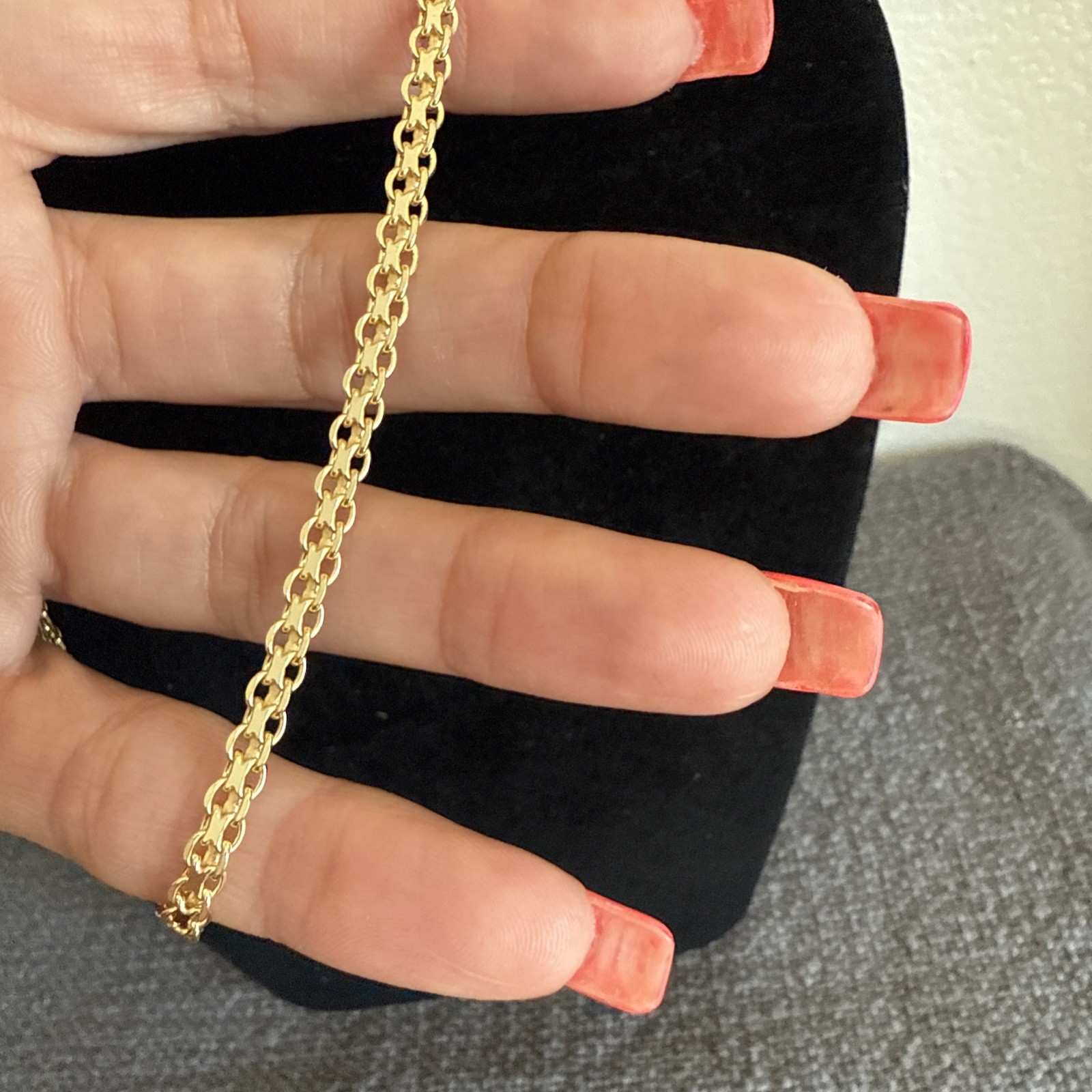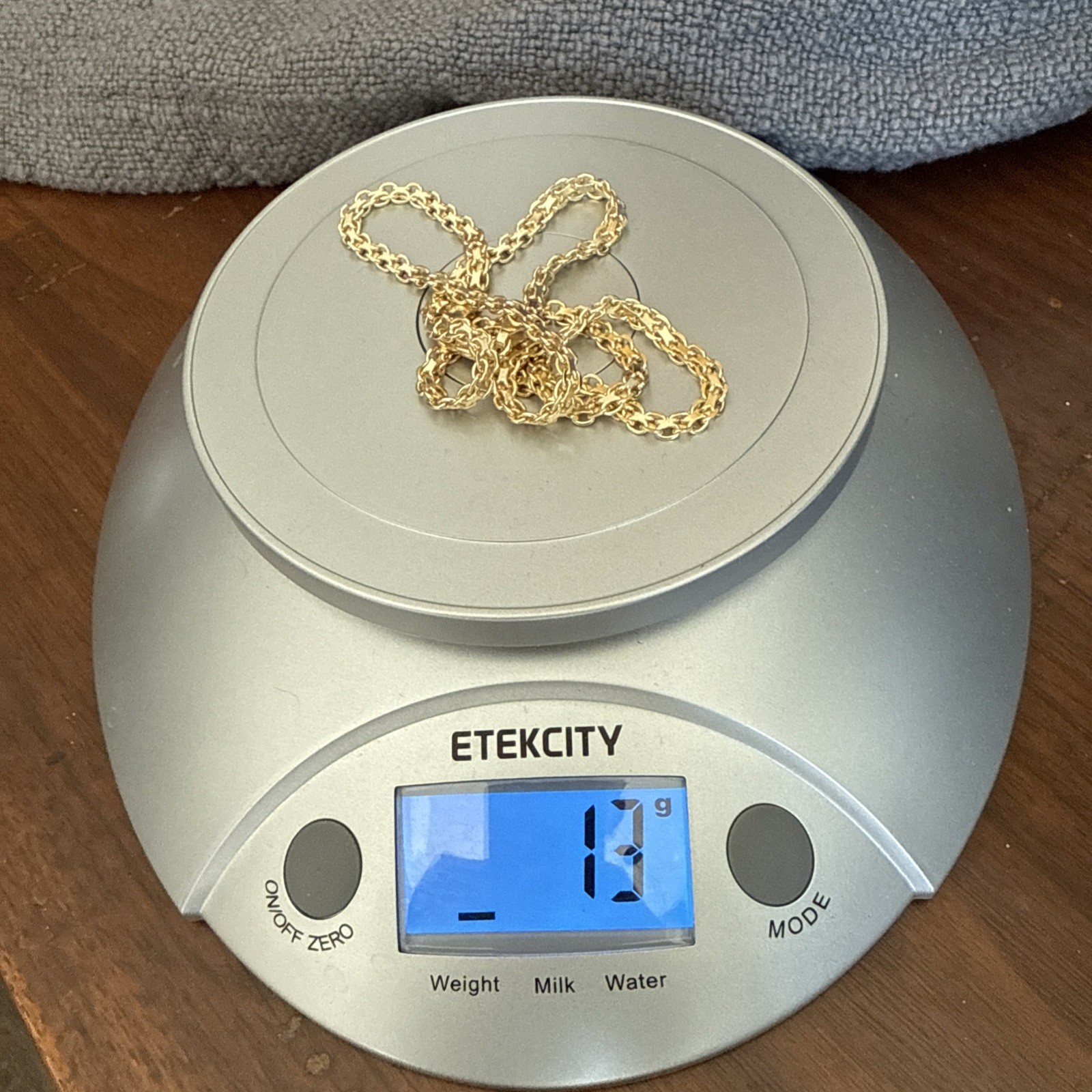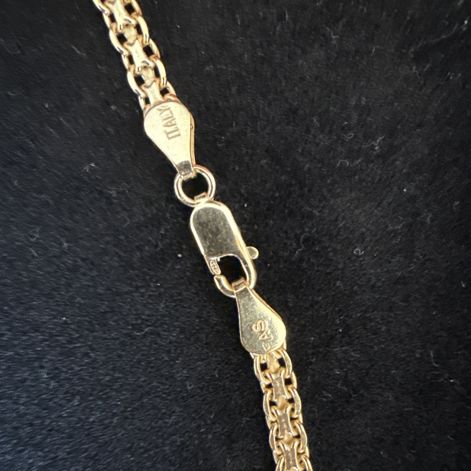 .925 solid, sterling silver. Quality jewelry. Stamped. Perfect for stacking!! Any yellow or rose coloring is gold-over. Perfect for gifts! This 20" link chain is crafted from solid .925 sterling silver with a gold-over finish, making it a stunning accessory for any occasion, especially a birthday. The necklace features a classic chain style with a durable and high-quality construction. Made in Italy, this piece exudes elegance and sophistication, perfect for adding a touch of luxury to any outfit.