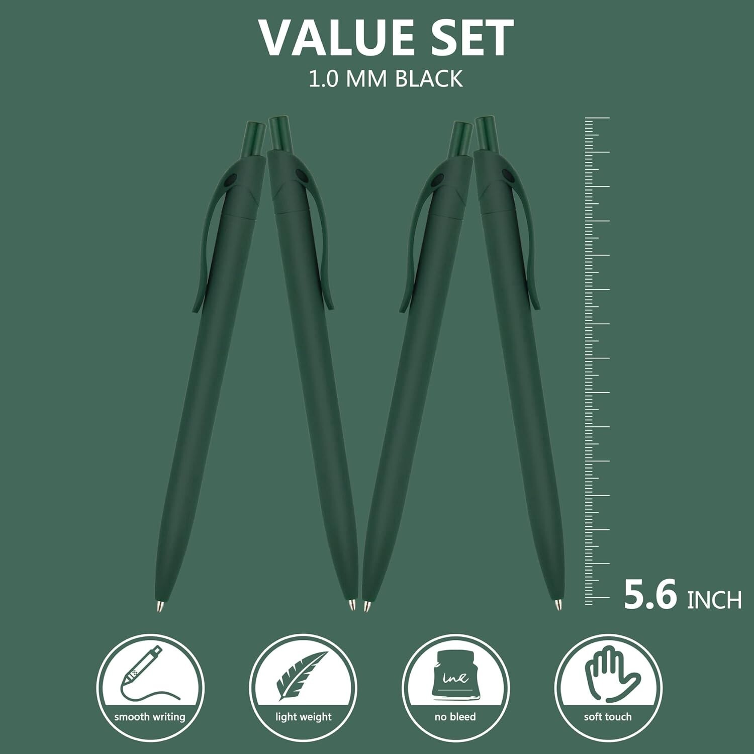 Pens Bulk, 200 Pack No Bleed Green Barrel Click Pens, Wholesale Retractable Ballpoint Pens, Pens Medium Point, Smooth Ink Pens, Black Ink ✍ SOFT TOUCH: Each pens with soft touch surface treatment, having a great grip feeling. ✍ SMOOTH black ink make wiriting 's also no bleed in onion paper. ✍ GREAT VALUE: Single price less than a 's a valuable choice for office,class,restaurant,workshop. ✍ MODERN DESIGN: Simple pen shape with retro style barrel coloring. let your writing job full of colorful. ✍ RELIABLE SUPPLIER: 's products are all producted by experienced pen supplier. Besides, 100% in time after-sales service be proivded.