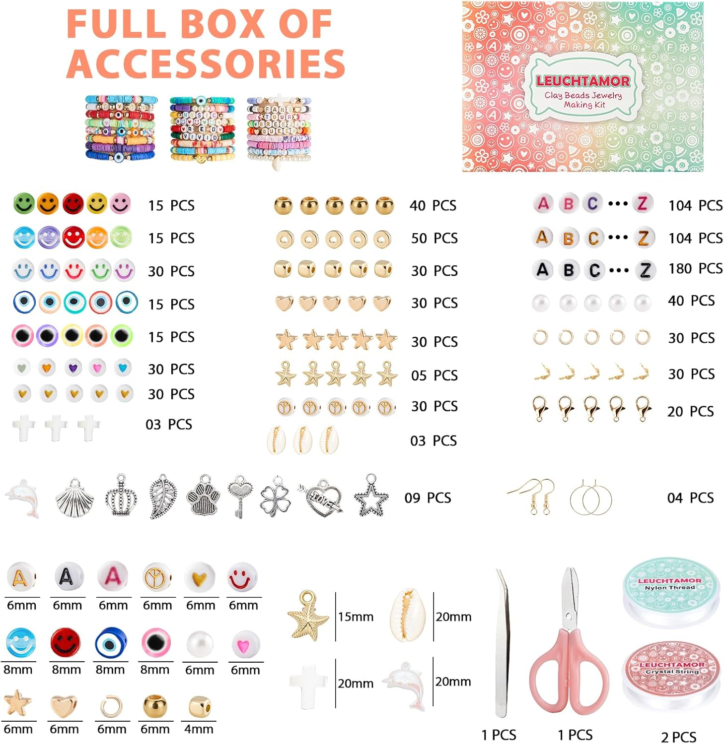 This bracelet-making kit is a dream for DIY lovers! With 20,000 colorful clay beads, including letters, hearts, and smileys, crafting unique jewelry is so much fun. The beads are smooth, lightweight, and easy to string—perfect for bracelets, necklaces, or keychains. Great quality, endless creativity, and an amazing variety of colors and charms. Highly recommend for crafters of all ages!
