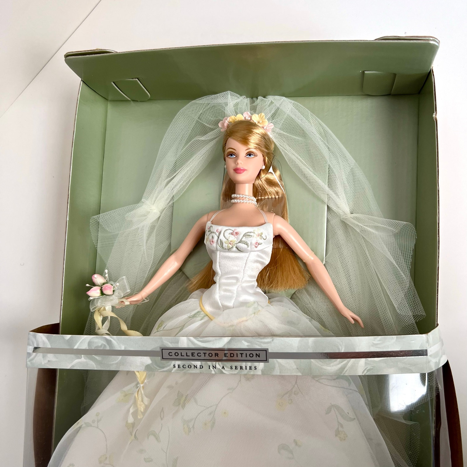 Add a touch of nostalgia to your collection with this NEW 2001 Romantic Wedding Bride Barbie Doll from the Bridal Collection. This vintage Y2K Bride Barbie is a must-have for collectors, featuring a breathtaking wedding gown with intricate details, making it a stunning display piece or a thoughtful gift for Barbie enthusiasts. Comes with certificate of authenticity. Brand: Mattel Ethnicity: Caucasian Hair Color: Blonde Eye Color: Blue Condition: ✔ Brand new, never removed from the box ⚠Please note: The box has damage from storage, but the doll remains brand new and untouched inside. Perfect for Barbie collectors, Y2K lovers, or as a special keepsake, this rare find won’t last long! Ships securely to protect the original packaging. Ships next business day. tags: gift for her; preppy; spring; summer; birthday; anniversary; valentines day; nostalgia; floral dress; pearl necklace; pastel colors