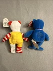 This 2004 Teenie Beanies McDonald's 25th Birthday HappyMeal Ronald McDonald and McNuggets the bears are a must-have for any McDonald's fan. The plush toy features the iconic character McNuggets the bear and Ronald McDonald the bear, making it a great addition to any collection. These were released in 2004 and are recommended for children aged 3-4 years. This toy is perfect for collectors or fans of McDonald's and will make a great gift for anyone who loves the brand. Used condition- Ronald McDonald bear in good condition. McNuggets the bear has visible damage/wear to the swing tag. Please see photos. Smoke free home