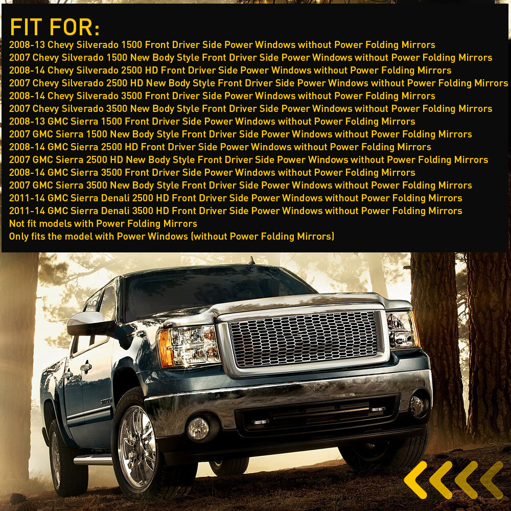 New Left Driver Side Power Door Lock Switch Fit For Chevy, GMC etc. Fit for: 2008-13 Chevy Silverado 1500 Front Driver Side Power Windows without Power Folding Mirrors 2007 Chevy Silverado 1500 New Body Style Front Driver Side Power Windows without Power Folding Mirrors 2008-14 Chevy Silverado 2500 HD Front Driver Side Power Windows without Power Folding Mirrors 2007 Chevy Silverado 2500 HD New Body Style Front Driver Side Power Windows without Power Folding Mirrors 2008-14 Chevy Silverado 3500 Front Driver Side Power Windows without Power Folding Mirrors 2007 Chevy Silverado 3500 New Body Style Front Driver Side Power Windows without Power Folding Mirrors Master Front Door Lock Driver Switch Side for 2007-2013 Chevy Silverado 1500 GMC New Left Driver Side Power Door Lock Switch Fit For Chevy, GMC etc. Fit for: 2008-13 Chevy Silverado 1500 Front Driver Side Power Windows without Power Folding Mirrors 2007 Chevy Silverado 1500 New Body Style Front Driver Side Power Windows without Power Folding Mirrors 2008-14 Chevy Silverado 2500 HD Front Driver Side Power Windows without Power Folding Mirrors 2007 Chevy Silverado 2500 HD New Body Style Front Driver Side Power Windows without Power Folding Mirrors 2008-14 Chevy Silverado 3500 Front Driver Side Power Windows without Power Folding Mirrors 2007 Chevy Silverado 3500 New Body Style Front Driver Side Power Windows without Power Folding Mirrors 2008-13 GMC Sierra 1500 Front Driver Side Power Windows without Power Folding Mirrors 2007 GMC Sierra 1500 New Body Style Front Driver Side Power Windows without Power Folding Mirrors 2008-14 GMC Sierra 2500 HD Front Driver Side Power Windows without Power Folding Mirrors 2007 GMC Sierra 2500 HD New Body Style Front Driver Side Power Windows without Power Folding Mirrors 2008-14 GMC Sierra 3500 Front Driver Side Power Windows without Power Folding Mirrors 2007 GMC Sierra 3500 New Body Style Front Driver Side Power Windows without Power Folding Mirrors 2011-14 GMC Sierra Denali 2500 HD Front Driver Side Power Windows without Power Folding Mirrors 2011-14 GMC Sierra Denali 3500 HD Front Driver Side Power Windowswithout Power Folding Mirrors Not fit models with Power Folding Mirrors Only fits the model with Power Windows (without Power Folding Mirrors) Specifications: OE:15804093、15804094, 901-109, SW9550, PDS188, 1S12489, 901119, SM1800, P141-AS PIN: 5PIN Placement on vehicle: Front left (driver's side) Features: *Excellent quality The switch is made of superior material to provide a long service life and good shopping experience for our customer. *Easy Installation Easy installation with a direct replacement, plug-and-play. *Warm notice Please double-check the year OEM part number and models in the description to guarantee it fits your vehicle before ordering. *All tested before shipment All switches were tested for performance and to ensure the accurate parameter for your vehicle. Packaging include: Door switch *1 Item Specifics Brand AUXITO Country/Region of Manufacture China Manufacturer Warranty 2 Years Fitment Type Direct Replacement Color Black Housing Materia Plastic Switch Type Push Button To Control Door Lock Model For Chevy Type Drivers Door Lock Switch OE PDS188, 1S12489, 901119, SM1800, P141-AS PIN 5PIN Placement on Vehicle Front left (driver's side) Placement on vehicle Front left (driver's side) OE PDS188, 1S12489, 901119, SM1800, P141-AS Payment 1. We can only accept payment from PayPal. 2. Please keep the consistency of Paypal address and ebay address. Shipping 1. All items will be shipped in 12 hours after receiving your payment . 2. We ship this item to US only via USPS first class mail. It usually takes 3-5 working days to deliver. Returns 1. We offer 30 days return policy. 2. Please contact us within 30 days from the date you receive your package if you have any questions with the products . 3. Refund will be sent after we got your returned package. 4. All returned items should be in the original packaging with tracking number. Contact Us We work from Monday - Saturday 9:00AM - 6:00PM, but we will reply once we get your message. There will be delay on response if you send message or E-Mail on Sunday. DESCRIPTION PAYMENT SHIPPING RETURN POLICY CONTACT US Shop Category Store Home Other Hot Item Set of Delco 4 AC Oxygen O2 Sensor for 2003-2005 Chevrolet GMC V8 5.3L USD 48.44 For 2002-2008 Dodge Chrysler Stereo Car Radio Wiring Harness Adapter USD 12.59 1set Control Knob Speed Fan Heater A/C For Jeep Wrangler TJ 99-06 5011218AA USD 9.99 Universal Car Windshield Wiper Squirter Washer Nozzle Spray Jet Kit Fluid Hose T USD 9.99 Door Latch Cables LH+RH Front For 2007-2013 Chevy Silverado 1500 2500 HD 3500 HD USD 17.99 New List Item Fit For 2009-2014 Maxima Nissan Front Bumper Tow Hook Cap Cover Eye Access Black USD 9.99 Door Handle Outside Exterior Rear LH Driver For 2008-12 Honda Accord Chrome EPU USD 18.99 Front Left Driver Door Handle Key Cap Cover Bezel Black For 2019-2020 Ford SSV USD 15.99 For 2014 2015 Toyota 2016 Highlander Front Bumper Cover Mounting Bracket LH & RH USD 19.99 Center Console Armrest Lid Cover Gray for 1995-2000 Toyota Tacoma 96-98 4Runner USD 28.99 Excellent Delivery Master Front Door Lock Driver Switch Side for 2007-2013 Chevy Silverado 1500 GMC New Left Driver Side Power Door Lock Switch Fit For Chevy, GMC etc. Fit for: 2008-13 Chevy Silverado 1500 Front Driver Side Power Windows without Power Folding Mirrors 2007 Chevy Silverado 1500 New Body Style Front Driver Side Power Windows without Power Folding Mirrors 2008-14 Chevy Silverado 2500 HD Front Driver Side Power Windows without Power Folding Mirrors 2007 Chevy Silverado 2500 HD New Body Style Front Driver Side Power Windows without Power Folding Mirrors 2008-14 Chevy Silverado 3500 Front Driver Side Power Windows without Power Folding Mirrors 2007 Chevy Silverado 3500 New Body Style Front Driver Side Power Windows without Power Folding Mirrors 2008-13 GMC Sierra 1500 Front Driver Side Power Windows without Power