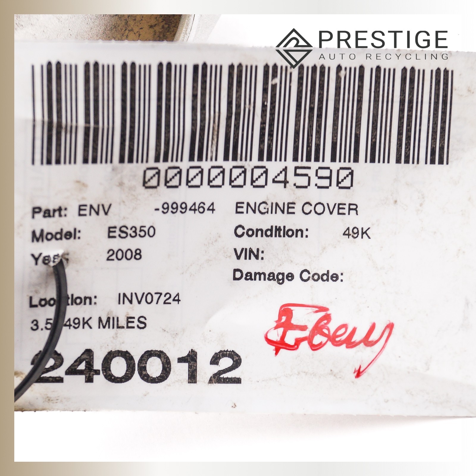 Prestige Auto Parts - Product Page Local pick-up available at 3400 Sunrise Blvd, Rancho Cordova, CA 95742 2007-2015 LEXUS ES350 Engine Cover w/ Emblem 11209-31120 OEM Not sure if the part fits? Send us your VIN, and we'll verify compatibility for you! Item Condition The item is in good condition, fully operational, and demonstrates normal signs of use. Please note that, as a used part, it may show light scuffs, scratches, or other minor imperfections, as shown in the photos provided. WHEN YOU BUY FROM US YOU AGREE TO OUR TERMS AND CONDITIONS: It is the buyer's responsibility to carefully inspect all of the photos for details and/or request more photos if necessary, what you see in photos is exactly what you will receive. Before purchase, the buyer MUST verify that the item will fit their vehicle. PLEASE NOTE: Make sure to verify fitment independently with your local dealer, information in the “compatibility” section is generated by eBay Motors, not from us. IF YOU HAVE ANY QUESTIONS, CONTACT US VIA EBAY MESSAGING BEFORE PURCHASING. Payment We accept PayPal, VISA, MasterCard, Discover, and American Express. Sales tax collected by eBay where applicable. For local orders, pay on pickup available. Shipping Most items ship within 24 hours of payment; items paid for on the weekend or holidays ship on the following business day. We ship by FedEx, UPS, USPS, and regional freight/LTL carriers, whichever option is most affordable and/or faster. Shipping prices for ground apply only to the continental United States. Anywhere else is considered international shipping and will have an international shipping rate. Any international customs fees are the responsibility of the buyer. Any free shipping we offer is for the continental United States only. If you are from Hawaii, Alaska, or a Territory of the United States, please request a shipping total before bidding and we will do our best to keep the cost low. For orders placed outside of the United States, we ship ONLY through the eBay Global Shipping Program. If you are outside of the US, use the eBay international shipping tool above to receive a price for shipping costs. Local pickup and delivery options also available, please contact us for arrangements. PLEASE NOTE: Oversized items like engines, transmissions, bumpers, doors, hoods, trunk lids, fenders and other similar items will be shipped via Freight Shipping and MUST be shipped to a business address with a dock or forklift access; otherwise, liftgate and/or residential delivery fees may apply. YOU MUST CONTACT US FIRST FOR A QUOTE BEFORE PURCHASING SAID ITEMS. Warranty and Returns All returns must be made within 30 days of item being received by the customer only if the item is non-functional or if it differs substantially from the description. Buyer is fully responsible for shipping cost of the return. We are not liable to pay for any labor fees associated with the installation or removal of any parts sold by us. All electronics are tested before removed from vehicle. IF NOT FUNCTIONAL, WE WILL NOT SELL. If the item is defected we will state accordingly and is sold for parts only. If you have any questions about the part you’re bidding on, PLEASE ASK QUESTIONS PRIOR TO BIDDING. 90 DAY WARRANTIES are available. Contact Us If you have questions about any part, please contact us BEFORE purchasing via eBay messaging. HOW DID WE DO? We are a small, family owned business dependent on our valuable customers. Once you have received your item in satisfactory condition, would you be so kind as to leave us feedback? If there is a concern that would cause you to want to leave negative feedback, please contact us first and we will do our best to resolve the issue. Thank you and God bless! © 2025 Prestige Auto Recycling. All rights reserved.