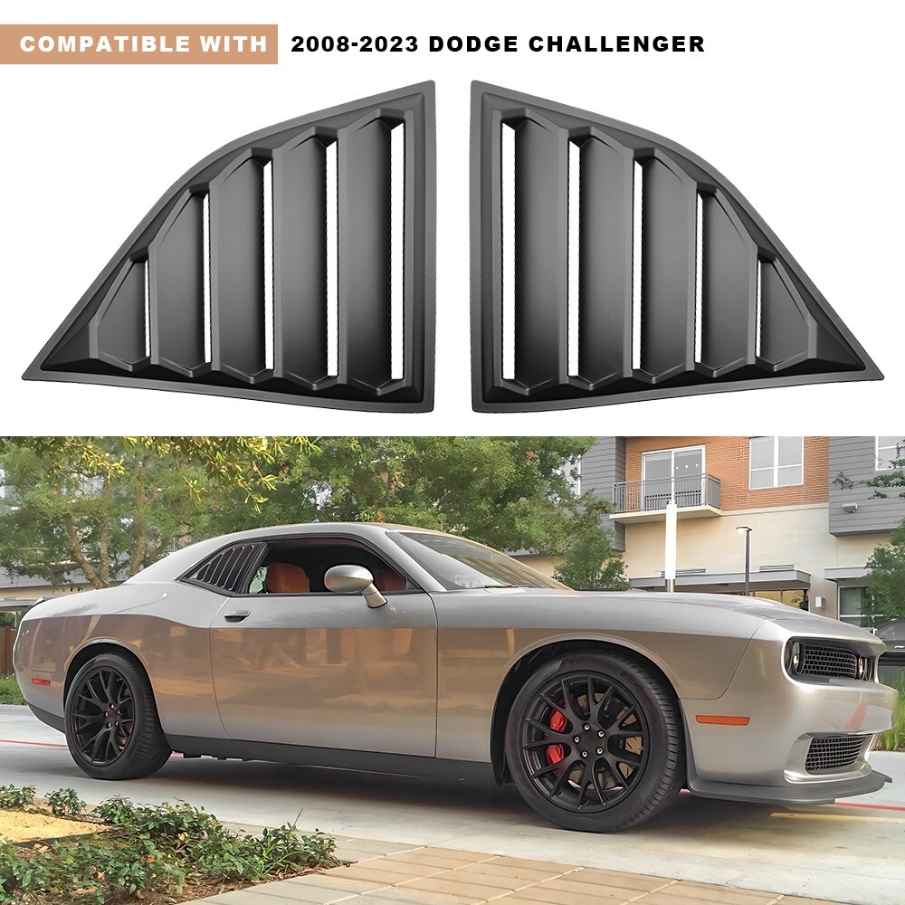 Fits 2008-23 Dodge Challenger Rear Side Window Louver Sun Cover Vent Matte Black Package Include: ●2pcs of side rear window louver cover trims ●Installation instruction is not included. Professional installation or installation video reference is recommended Fitment: ●For Dodge Challenger 2008-2023 Item Description: ● Material: ABS plastic ●Condition: 100% Brand new, never been used or installed ●Color: Matte Black ●Country of origin: China Features: ●Easy installation ●Perfect fitment ●Fashionable trim style ●Including left and right side ●High quality ABS plastic material ●V isually enhance the performance look ● I ncrease privacy and minimizing interior temperature