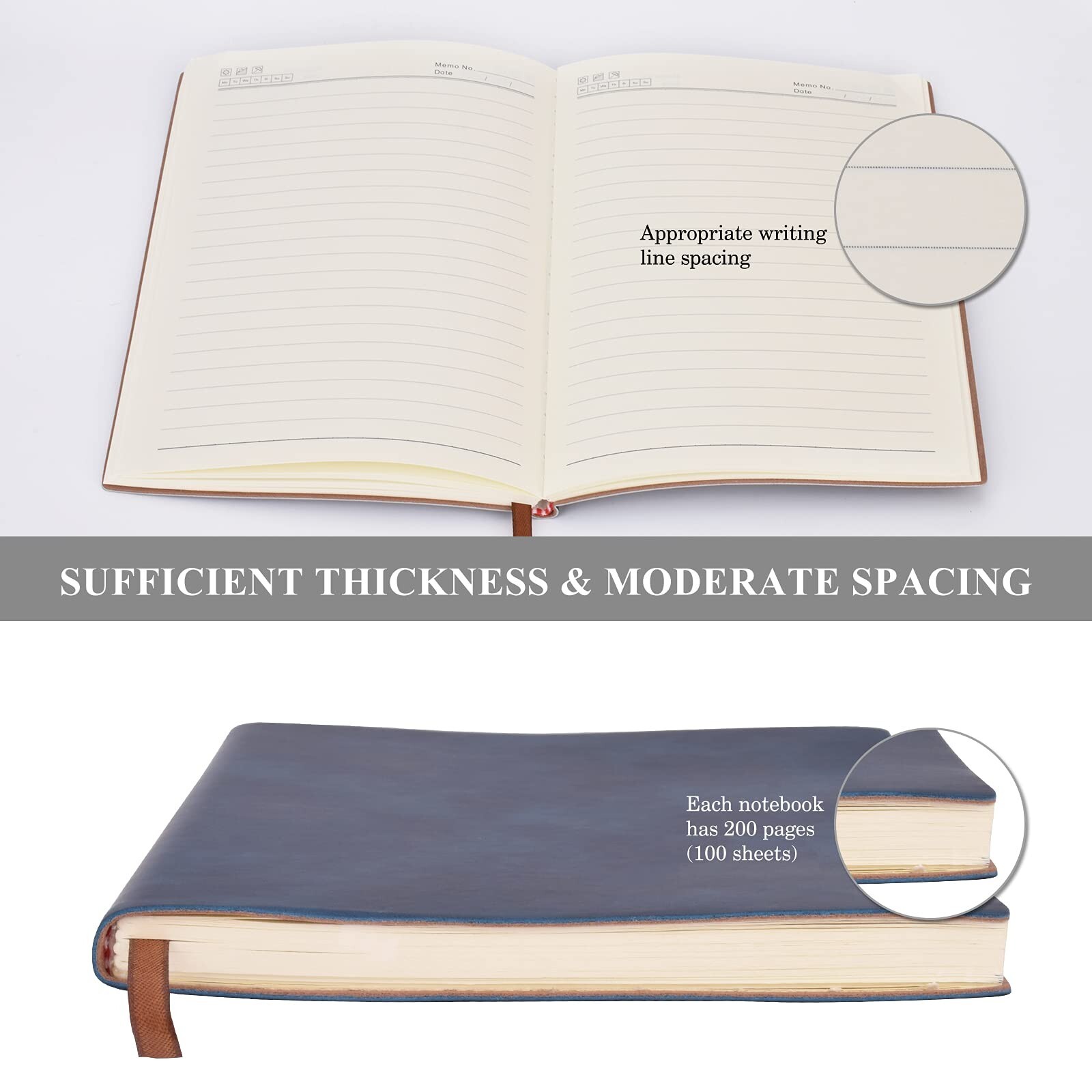2PACK 100 Pages Journal Notebook Thick Banded with Pocket&Pen Loop&Page Dividers