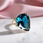$ 721.3518K Yellow Gold Wedding Ring Real Diamond Cushion Cut London Blue Topaz 15.90 Ct