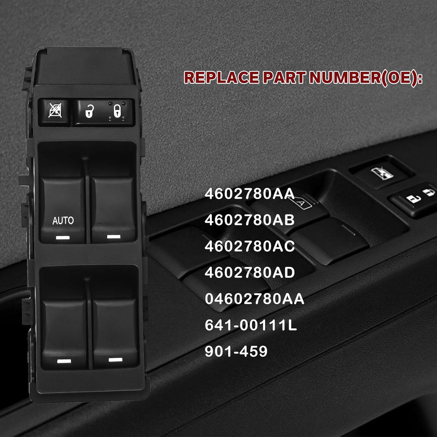 1 PCS Black Master Power Window Control Switch Front Left For CHRYSLER / DODGE / JEEP 04602780AA、4602780AB、4602780AC、4602780AD Warm Tip: Please check whether it is fit your vehicle before purchase. Fitmet: CHRYSLER | 2004-2010 Chrysler 300 2007-2014 Chrysler Sebring DODGE | 2007-2014 Dodge Avenger 2011-2012 Dodge Caliber 2007-2010 Dodge Charger 2005-2011 Dodge Dakota 2004-2006 Dodge Durango 2007-2010 Dodge Magnum JEEP | 2011-2014 Jeep Compass 2005-2006 Jeep Grand Cherokee 2011-2014 Jeep Patriot Detail: Type:Window Switch Style:Driver Side Master Window Switch Fit for:CHRYSLER / DODGE / JEEP Material:ABS Voltage:12V Buttons:6 Buttons To Control : Window Lock,Door Lock,Mirror Placement on Vehicle : Front Left Fitment Type : Direct Replacement Switch Type : Push Butto Jeep Compass Patriot 2011-2014 Power Window Switch - Driver Side Master Door Con 1 PCS Black Master Power Window Control Switch Front Left For CHRYSLER / DODGE / JEEP 04602780AA、4602780AB、4602780AC、4602780AD Warm Tip: Please check whether it is fit your vehicle before purchase. Fitmet: CHRYSLER | 2004-2010 Chrysler 300 2007-2014 Chrysler Sebring DODGE | 2007-2014 Dodge Avenger 2011-2012 Dodge Caliber 2007-2010 Dodge Charger 2005-2011 Dodge Dakota 2004-2006 Dodge Durango 2007-2010 Dodge Magnum JEEP | 2011-2014 Jeep Compass 2005-2006 Jeep Grand Cherokee 2011-2014 Jeep Patriot Detail: Type:Window Switch Style:Driver Side Master Window Switch Fit for:CHRYSLER / DODGE / JEEP Material:ABS Voltage:12V Buttons:6 Buttons To Control : Window Lock,Door Lock,Mirror Placement on Vehicle : Front Left Fitment Type : Direct Replacement Switch Type : Push Button Color : Black OE Number:04602780AA、4602780AB、4602780AC、4602780AD Pins Number:7 + 6 Country/Region of Manufacture:China Fitment Type:Direct Replacement Package Include:1 PCS Black Power Window Switch Number Of Pieces:1 Warranty:1 Year Features: According to the original factory specifications. Direct replacement Stable performance, high reliability Easy installation Fast shipping and good operation Total new and high quality Manufactured under strict quality control 100% tested prior to leaving the factory Pins Number:7 + 6 Important Specifics:Only for left drive side vehicle FIT For CHRYSLER / DODGE / JEEP OE NO.:04602780AA、4602780AB、4602780AC、4602780AD Store Service: All our product share 1-year warranty. If incorrect or defective item when you receive it, please feel free to contact us via eBay message. We will pay return shipping fee and arrange replacement ASAP. We are a professional shop. We devote ourselves to offering best product and good service.Any problem, complaint or suggestion happened during transaction, please contact us before leaving any feedback. We are committed to resolve all issues in a friendly and satisfactory manner. If you have any questions, please contact us, we will solve the problem for you within two working days Thank you! Payment Delivery details Terms of sales About us Contact us Payment We only accept Paypal for your payment method. Delivery details The goods are shipped from New Jersey, USA. We will ship the goods within 24 hours after receiving the payment. Usually you will receive the goods within 1 to 5 working days. If you do not receive it during this period, please contact us directly through the eBay email. We will do our best to solve the problem for you. Thank you for your cooperation! Terms of sales Please note before buying, this part does not fit all versions of the model advertised in the eBay compatibility list as eBay work via engine size(s) not via specification of the car. Using the title or the compatibility table alone is not enough to ensure the part will be suitable as there can be more than one part that fits the same make and model. Please also check this is correct part, size and fittings before buying. We do our best to list items with as many details as possible. So please check our details match yours and ask a question if you're not sure. It is the buyer's responsibility to check that the item they purchase is identical to the original item being placed. Mistakes take time and money to rectify. If an item is incorrectly ordered or no longer needed, the item can be returned for a refund, however, please note that we will refund you for the item minus our postage cost of £4.90-£6.90 (which may not have been included in the price) The parts we sell are all brand new, unless stated, and some parts may have marks and scratches which may have been caused when testing, but will not affect the functionality of the part. About us Thank you very much for purchasing products in our store. Your order has been sent. If you have received our products, if you have any questions, please contact us in time. We will reply to you within 24 hours in weekday.Thanks for your cooperation again. Contact us Please email us if you have any question, we'll try our best to help you.