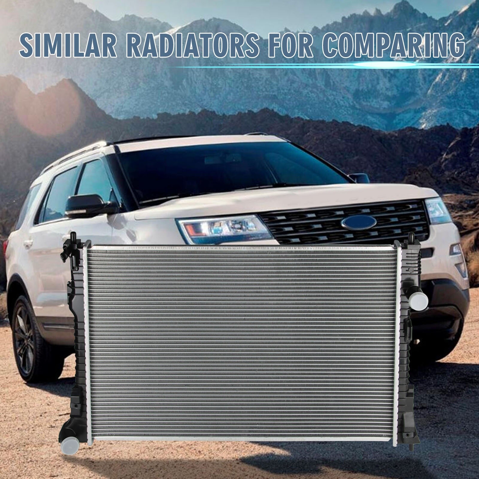 Specification Condition: New DPI: 13445 Core Material: Aluminium Manufacturer Warranty: 1 Year Warranty for Quality Problems Fitment Type: Direct Replacement Package size(inch): 36.85*23.31*5.91 Package weight(lbs): 9.84 Package weight(kg): 4.462 Interchange Part Number: CU13445,13445,RAD13445 Outlet (inch): 1-1/2 In Inlet (inch): 1-1/2 In Outlet Header(inch): 20-1/16 In. x 2-1/16 In Inlet Header(inch): 20-1/16 In. x 2-1/16 In Thinckness(inch): 5/8 In Width: 18-13/16 In Height: 28-3/4 In Row Count: 1 Style: Crossflow Compatibility: MT radiator, without radiator cap Color: Silvery Placement on Vehicle: Front Tank Material: Plastic Type: Radiator Fitment 2011-2018 Ford Explorer Features & Benefits 1. Highest grade plastic tanks with aluminum core - made to withstand rust and wear. 2. With plastic cover to prevent dust during delivery. Leak tested & Sealing tested, durable and long-lasting. Direct Bolt-on Replacement with No Additional Time. 3. An aluminum core and durable plastic tank prevent rust and corrosion while also limiting weight and promoting longevity. 4. Wider tube or dimpled tube surface increases contact surface area for more efficient cooling. 5. Radiator is really easy to get damaged during delivery. We have upgraded packaging (EPE foam and cardboard)to prevent aluminum fins, plastic water tank and fitting parts from damage. EPE foam helps fix radiators to reduce wobble. 8.Notes:The size and weight of the product are manually measured, and there may be some errors